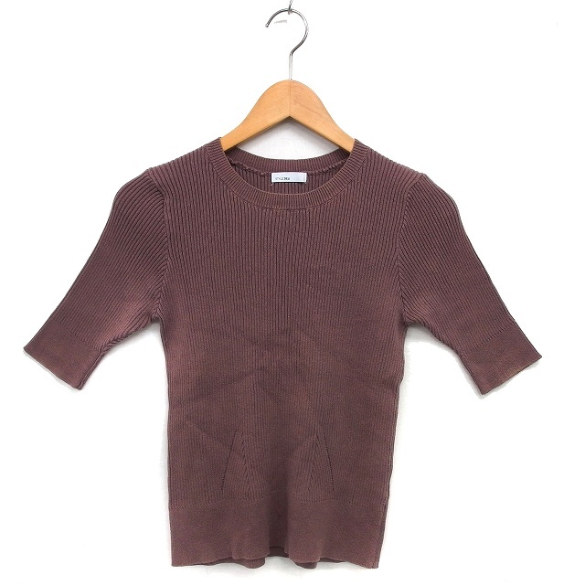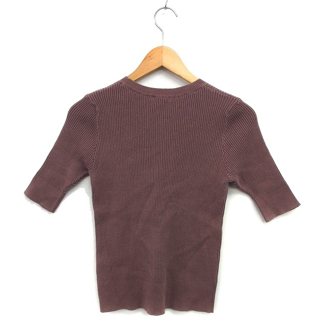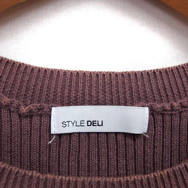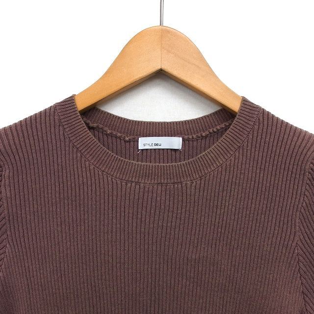 スタイルデリ STYLE DELI クルーネック ニット セーター リブ コットン 綿 五分袖 M モカ /NT27 レディース