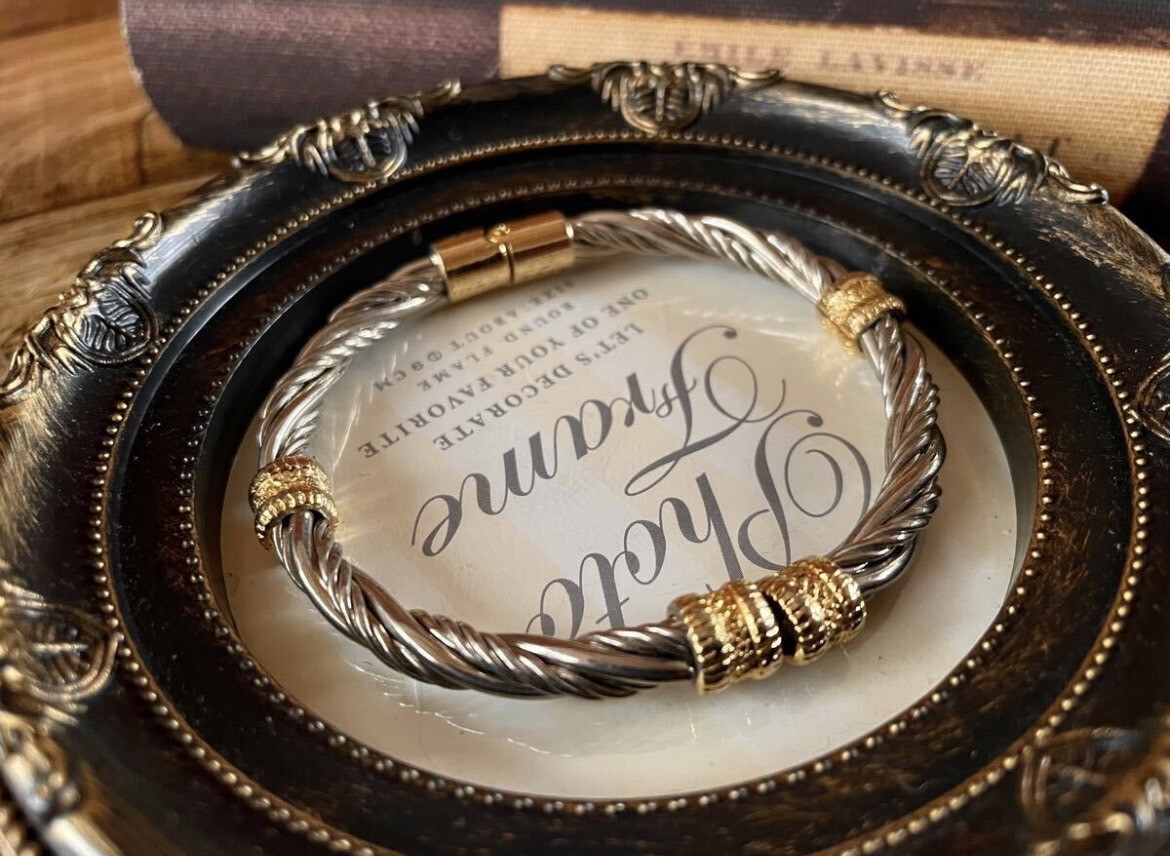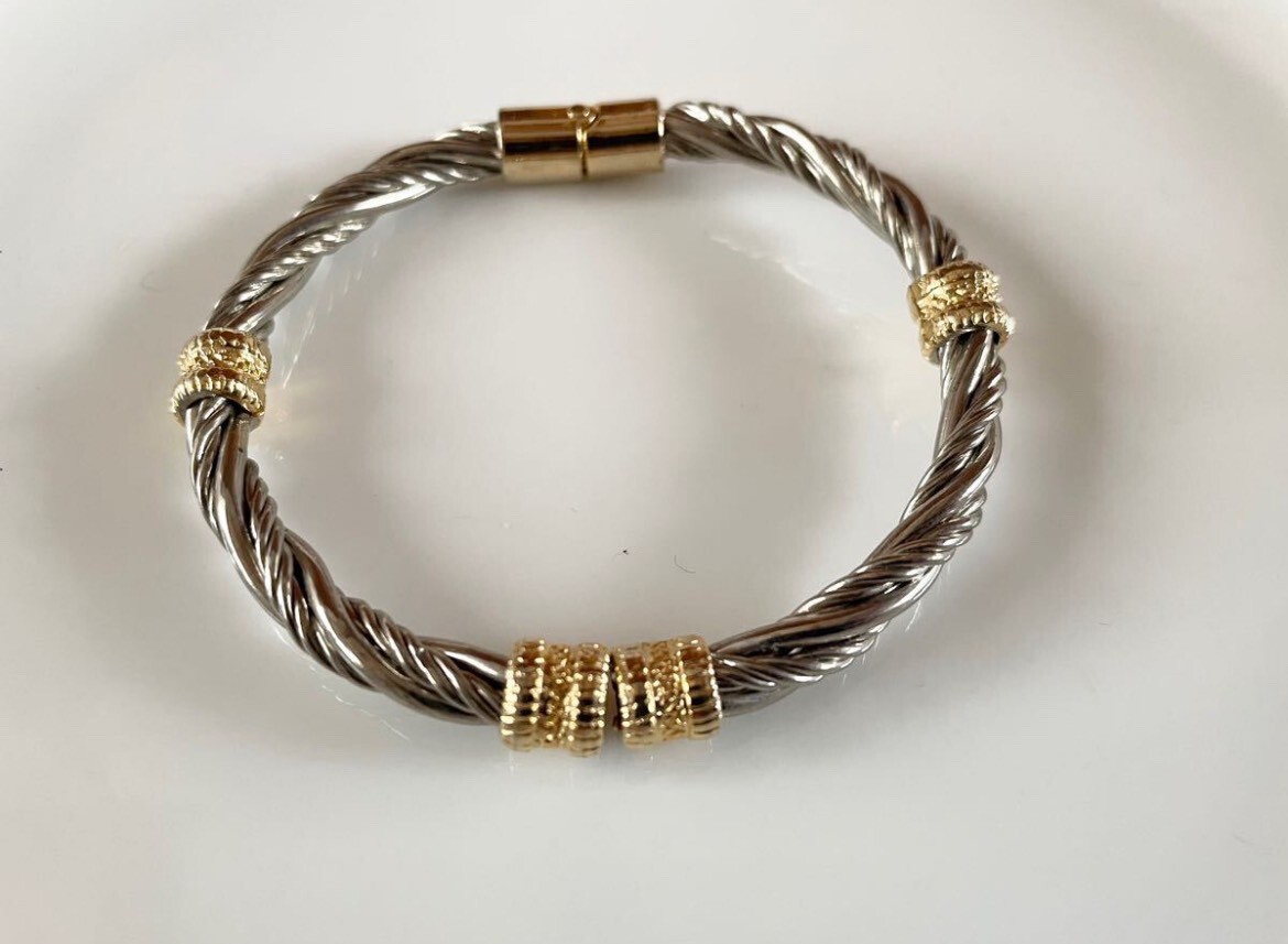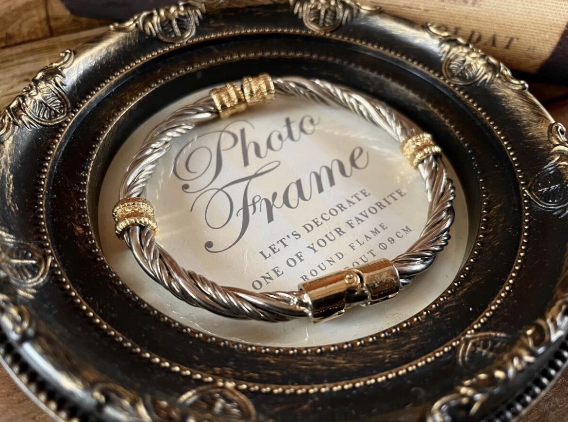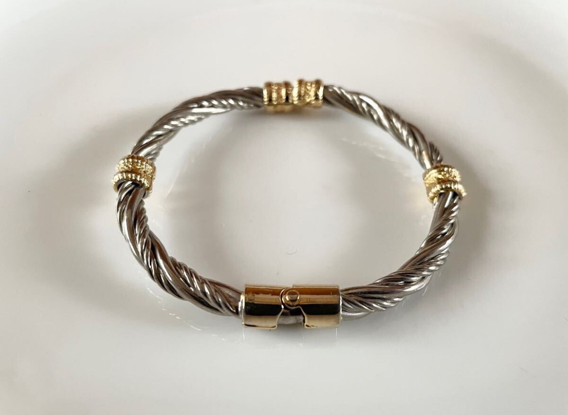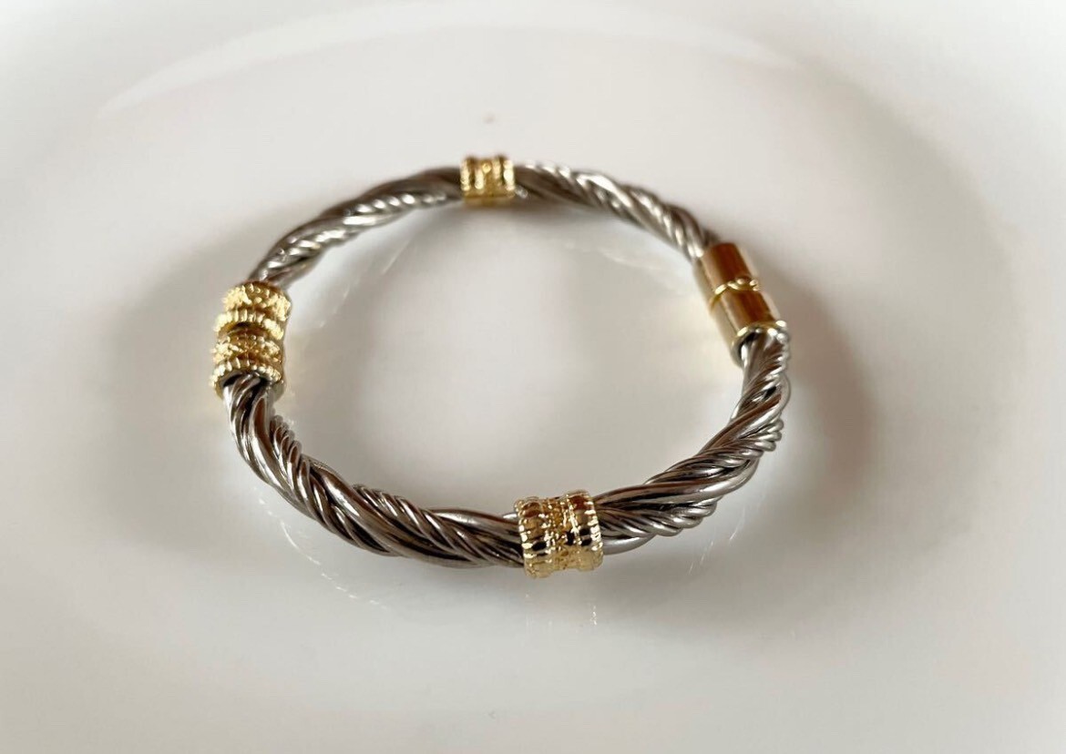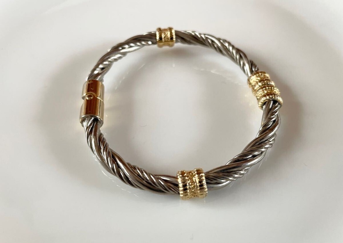こちら厚さ約5mm、内周約17.5cmのパカッと開くタイプのバングルです。