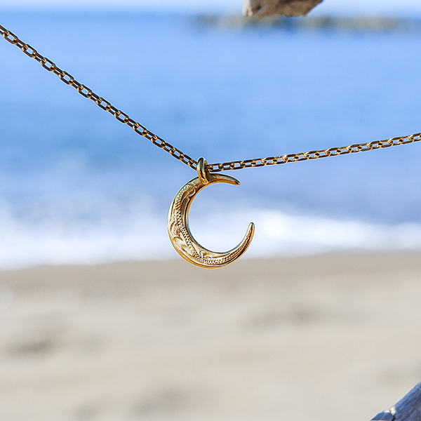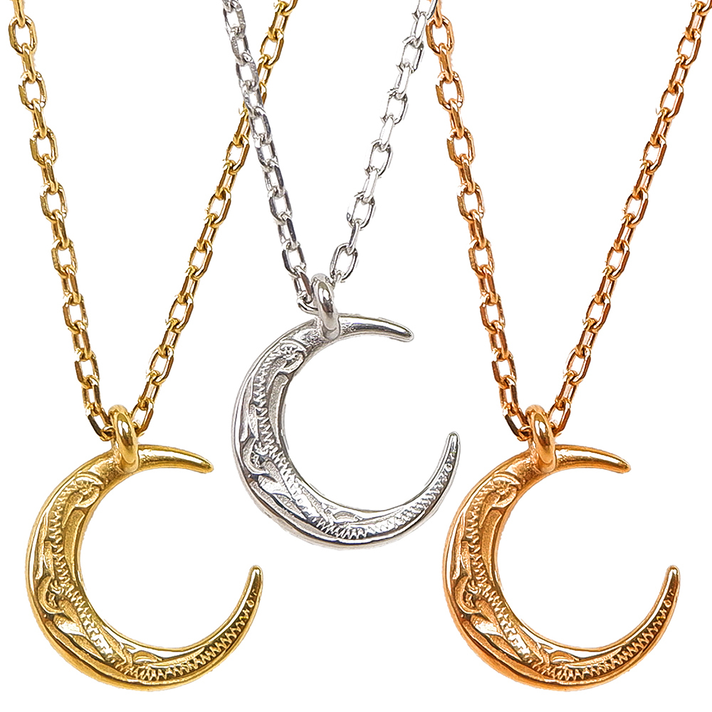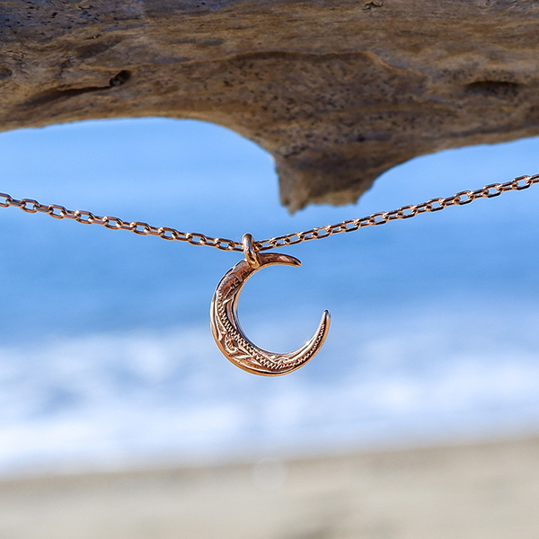 ハワイアンジュエリー チェーン付きネックレス ステンレス 月 三日月 ムーン 金属アレルギー対応 ピンクゴールド