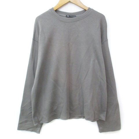 ザラ ZARA ニット カットソー 長袖 ラウンドネック 無地 M グレー /FF6 レディース