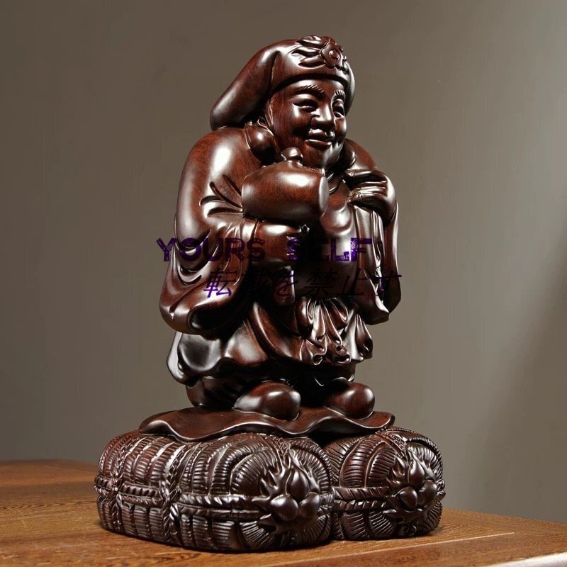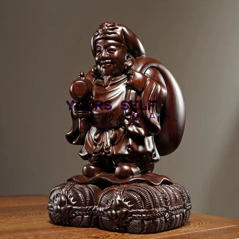 新入荷★大黒天 福の神 黒檀 木彫 鎮宅辟邪 手作り 精密細工 工芸品 招財開運 置物 15cm