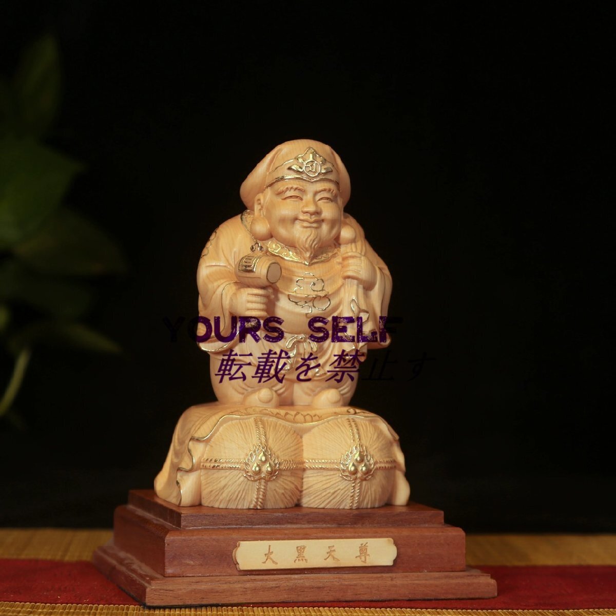 七福神 大黒天 彫像 仏教美術 高さ約18㎝ 像 台付き 切金 置物 仏像 神仏像