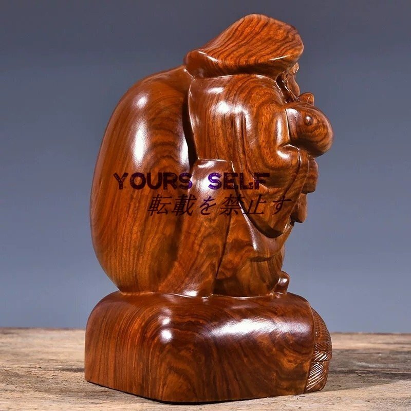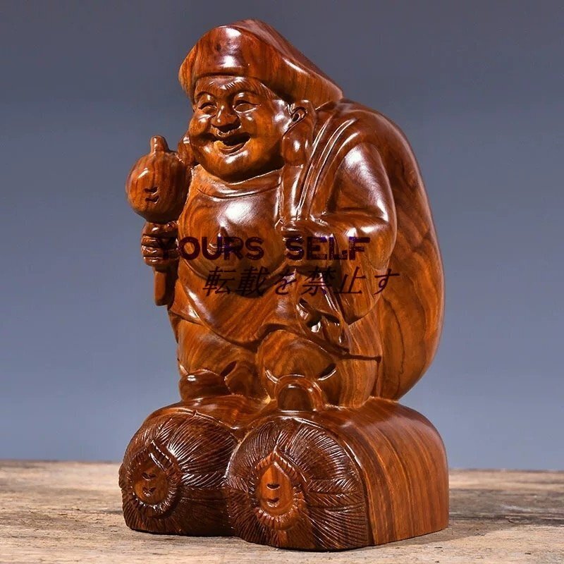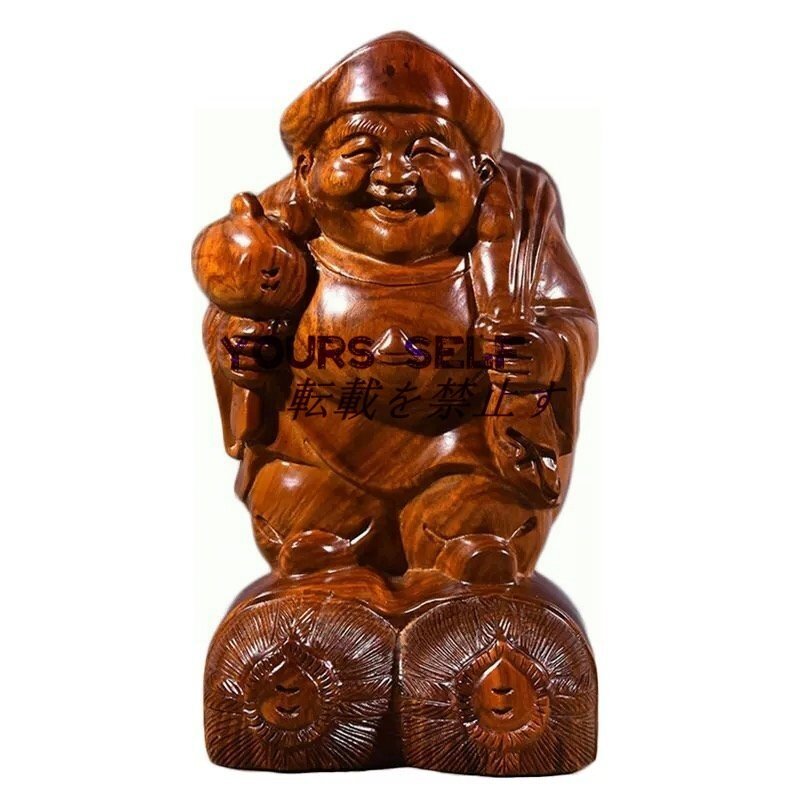 仏像 木彫り 七福神・大黒天 木像 木製フィギュア 黄花梨 花梨木 高級天然カリン材 ◆商売繁盛・無病息災・福徳・福運・厄除け (高さ30 cm)
