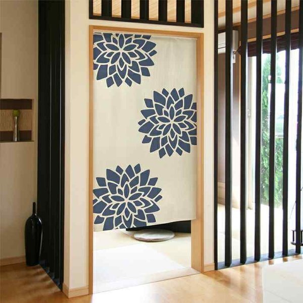 ■割れ目のないのれんです。真ん中のカットラインに沿ってハサミで切り込みを入れることもできます。竿通し部分まで切らないようにご注意ください。