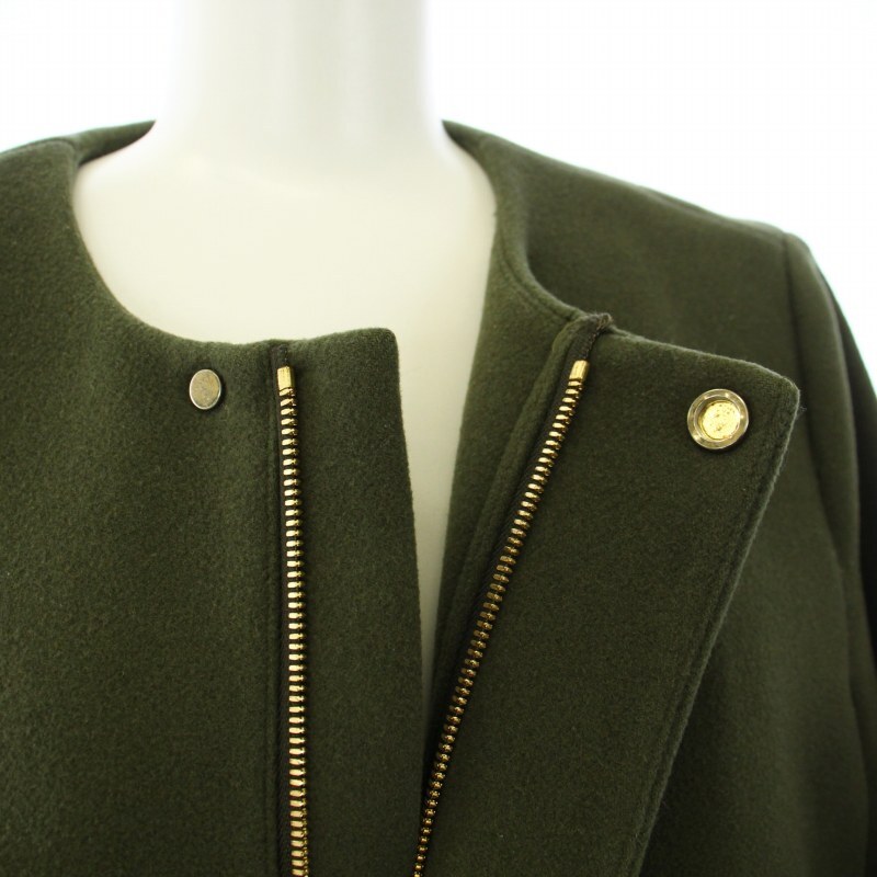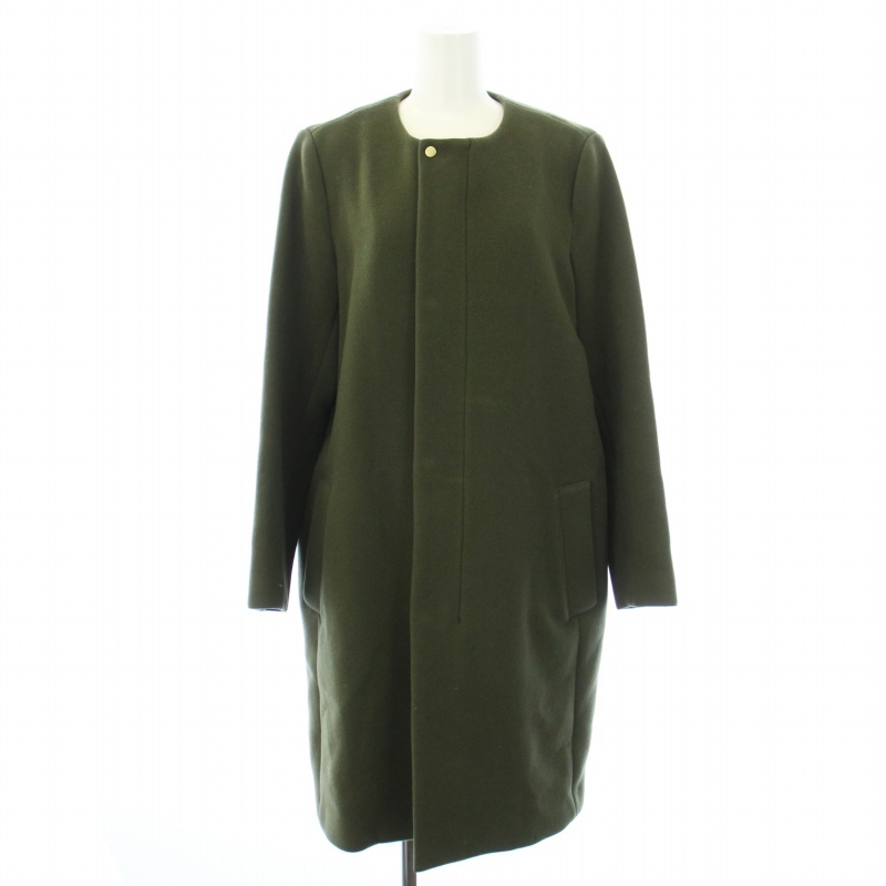 マカフィー MACPHEE トゥモローランド 17AW ノーカラーコート ミドル丈 ロング アウター 36 M カーキ /TK レディース