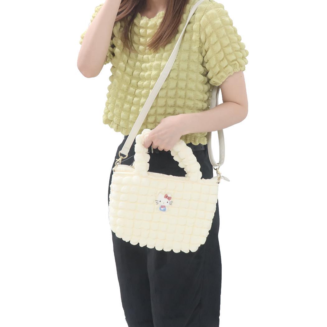 凹凸のある生地に大きな刺繍ワッペンがアクセント 大人気サンリオキャラクターグッズにまたまた可愛いnewアイテム登場こちらは使いやすい[ショルダーバッグ]持ち手付きで、トートバッグとショルダーバッグの2wayでお使いいただけます。こだわりを感じる内生地デザインも注目ポイントかわいいバッグいろいろあるのでお気に入りをみつけてくださいサイズ:約290x170x70mm素材:ポリエステル