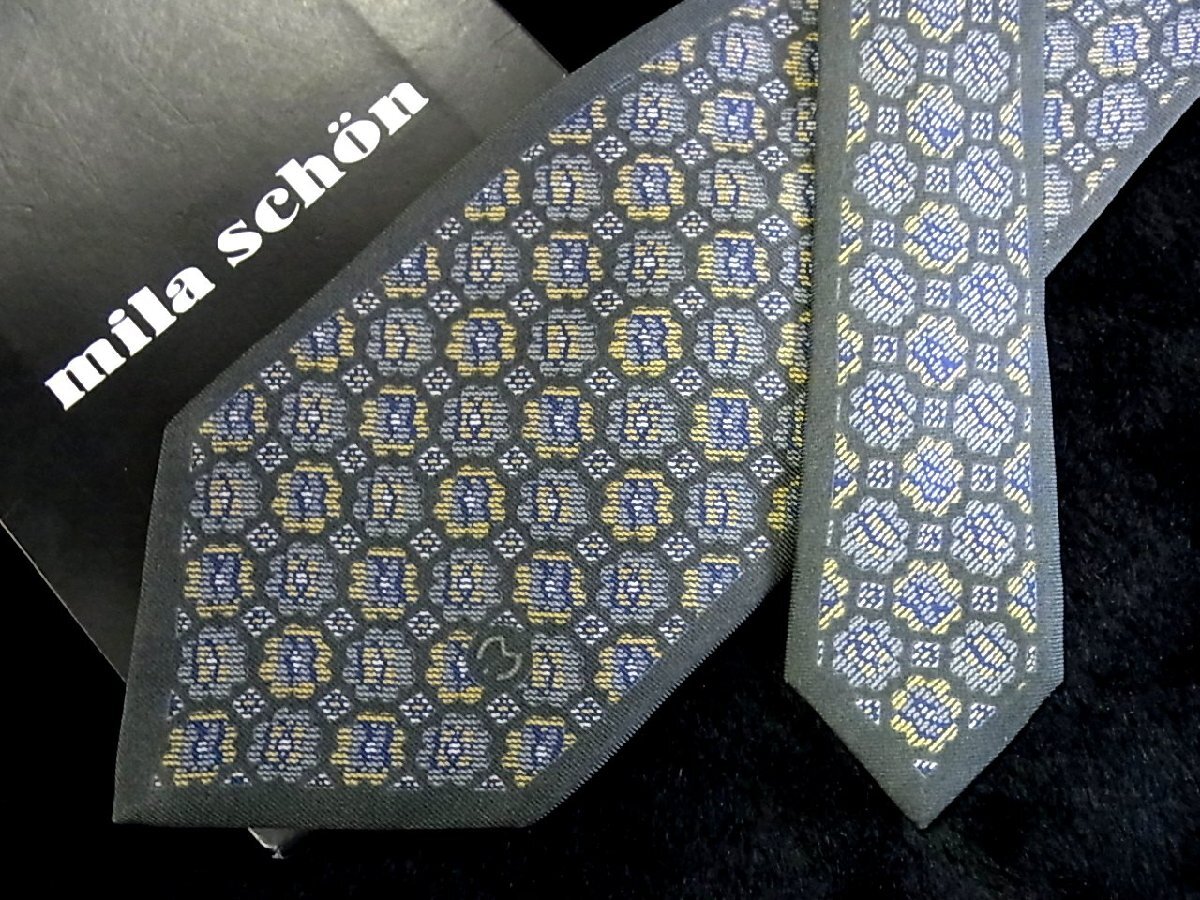 ♪今週の特売980円~♪3642♪良品【mila schon】ミラショーン【花 デザイン mロゴ 柄】ネクタイ♪