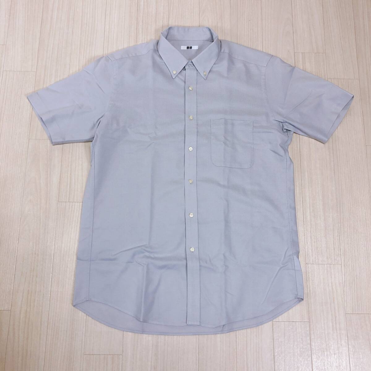ZX883 美品 UNIQLO ユニクロ メンズ トップス シャツ 半袖 グレー 灰 綿 コットン オフィスカジュアル 夏 オフィススタイリッシュルック