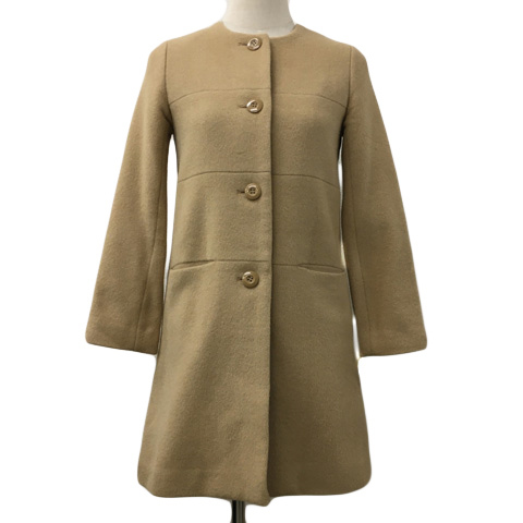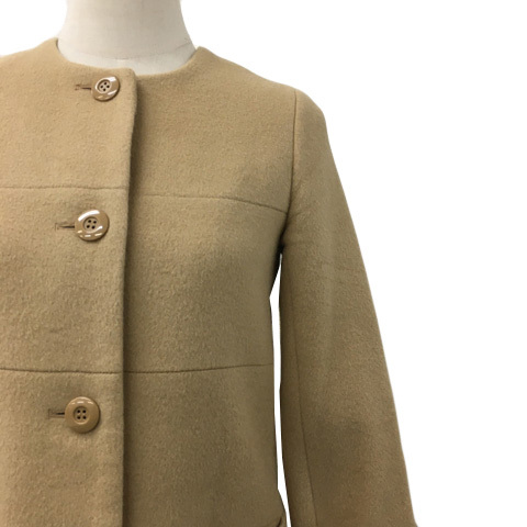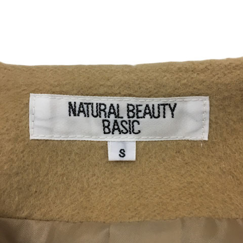 ナチュラルビューティーベーシック コート ノーカラー ロング シングル センターベント ウール アンゴラ混 無地 長袖 S ベージュ