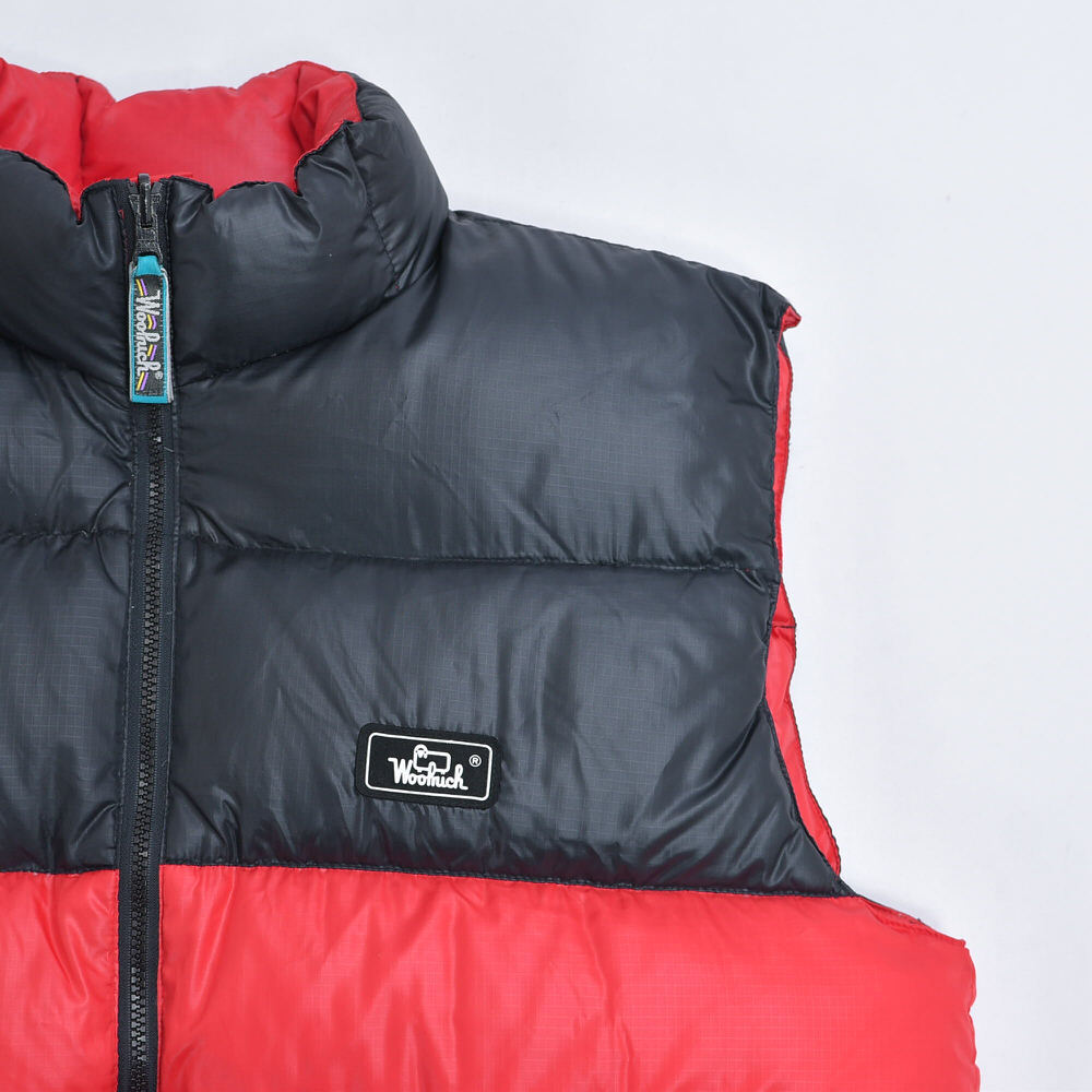 00s~ Woolrich ウールリッチ バイカラー デザイン ダウンベスト アウトドア ヴィンテージ レッド ブラック 羽毛 アウター ジャケット ビンテージ 古着 メンズLLサイズ