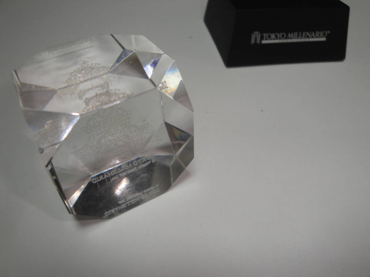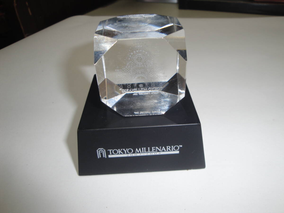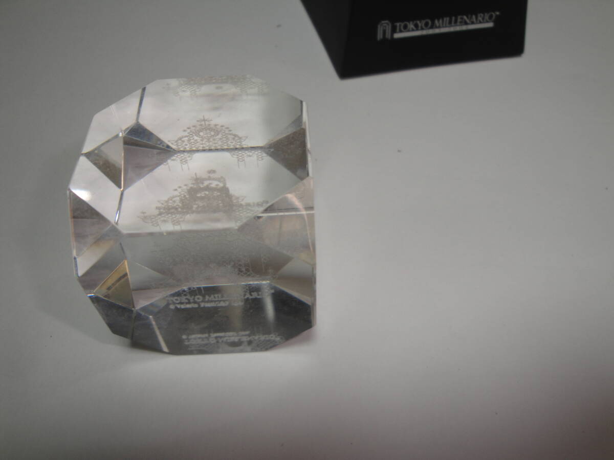 ☆クラフト 工芸品《TOKYO MILLENARIO:クリスタル置物(サイズ約:3.8×3.8×台座付高さ6.5cm》☆送料450円 クリスタルガラス 照明故障品