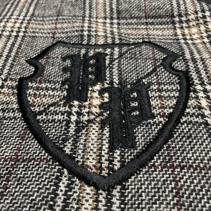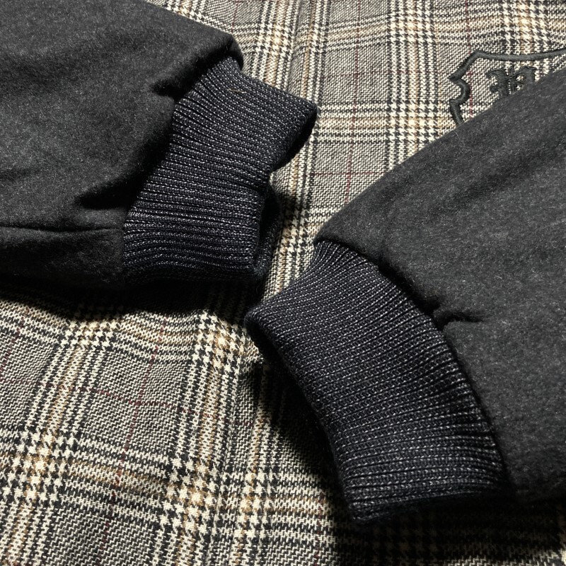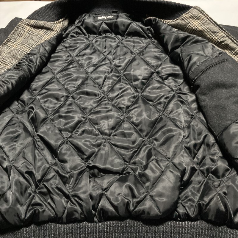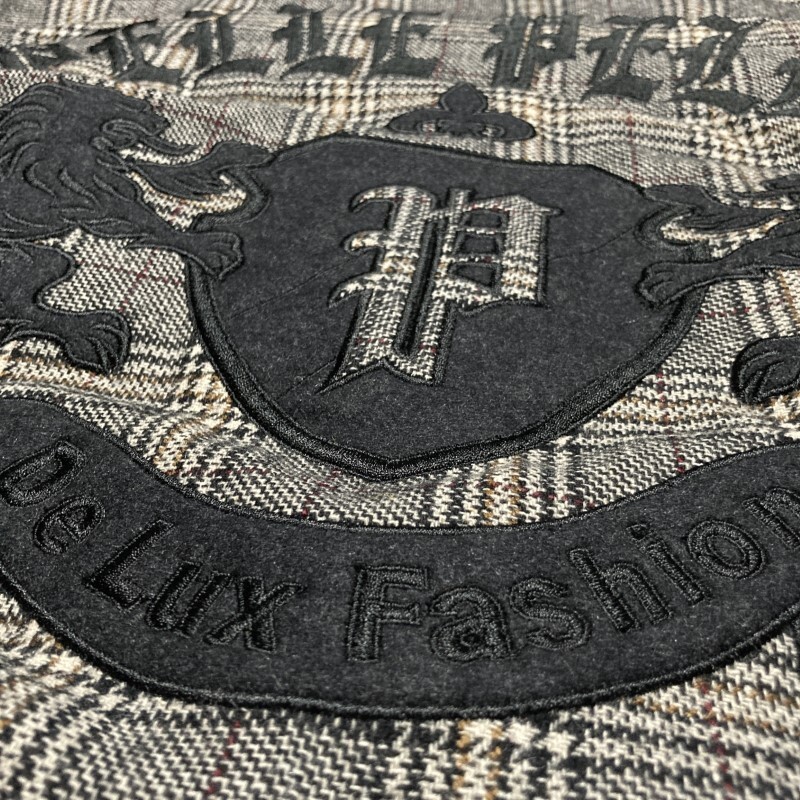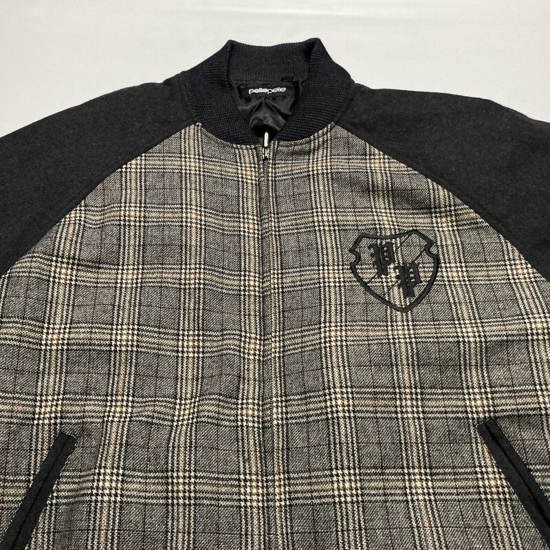 pelle pelle★豪華インパクト★ロゴ&ライオン&エンブレム刺繍 中綿スタジャン グレンチェック&格子チェック 灰 大きいサイズXXL ペレペレ