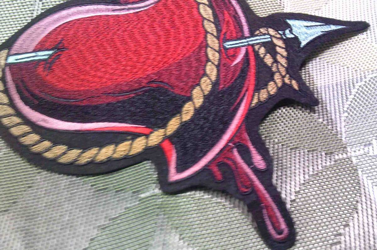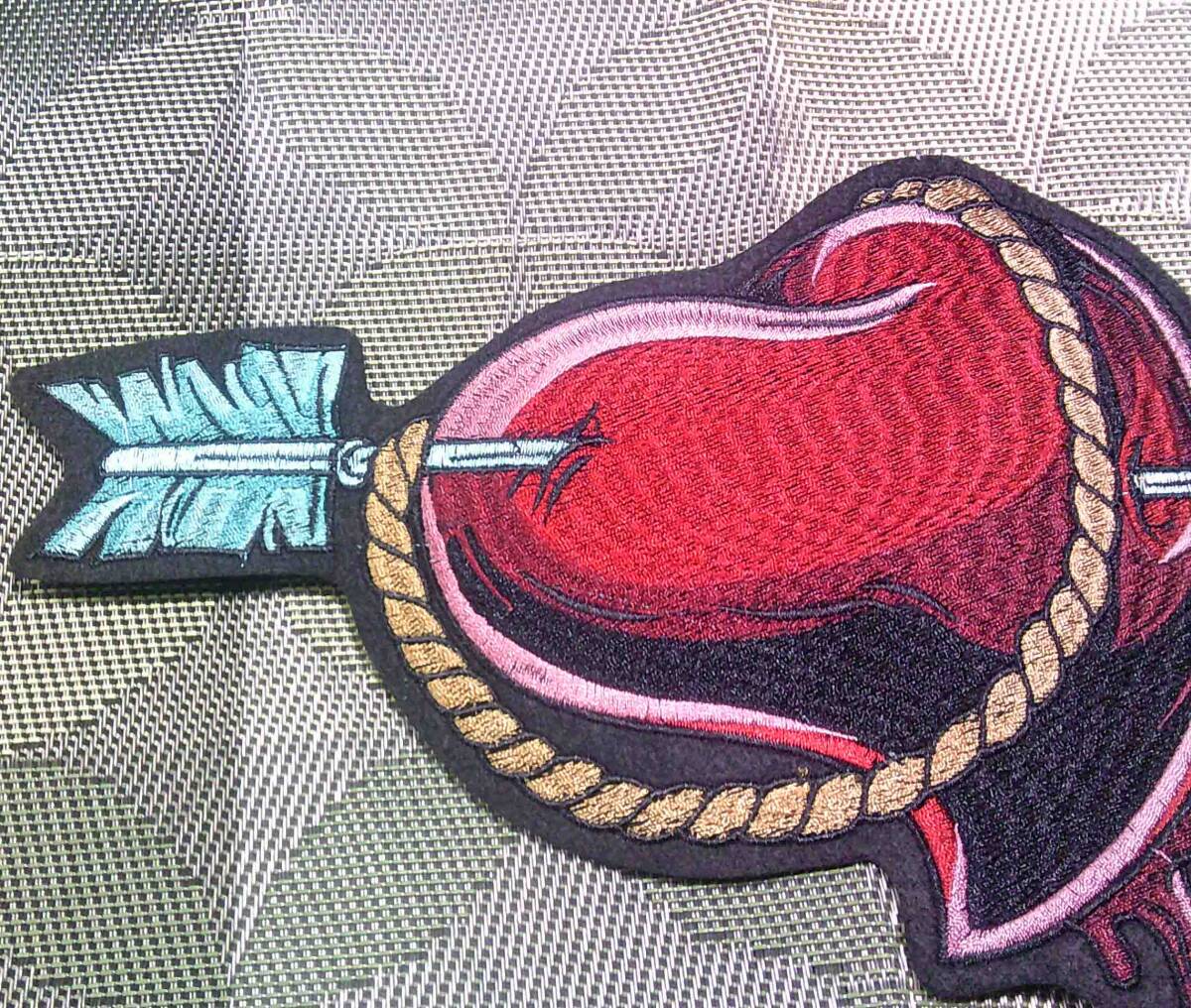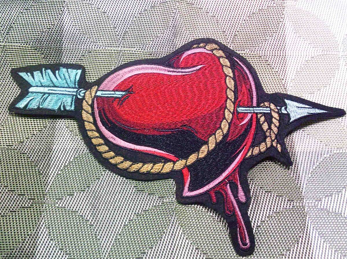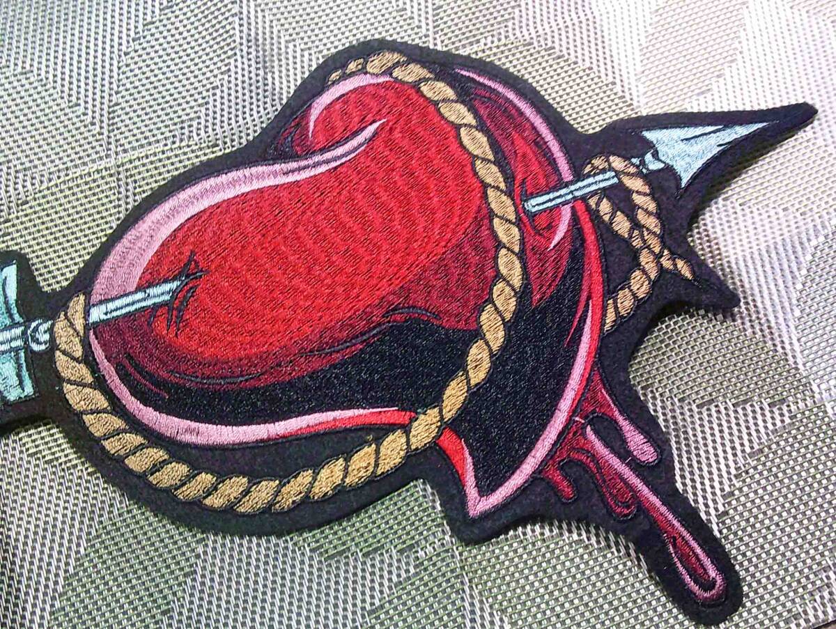 特大■《空矢縄流血心臓》■《縄 心臓  矢》 激渋デザイン 刺繍ワッペン(パッチ)◆ ◆激シブ◇アメリカ 大型二輪車 オートバイ バイク 単車 ハードロック◎ミリタリー■洋服・衣類・衣服DIY