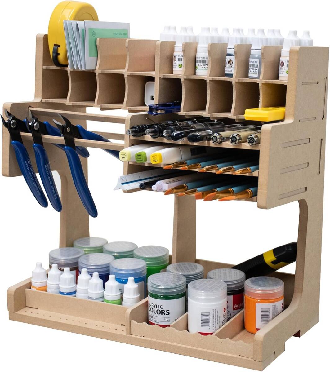 プラモデル愛好家のための究極の整理ツール: ペイントツール収納ラックは、あなたのプラモデル作業を次のレベルへと引き上げます。ペイントや溶剤をスマートに整理し、作業スペースを広げることができる、必須のアイテムです。