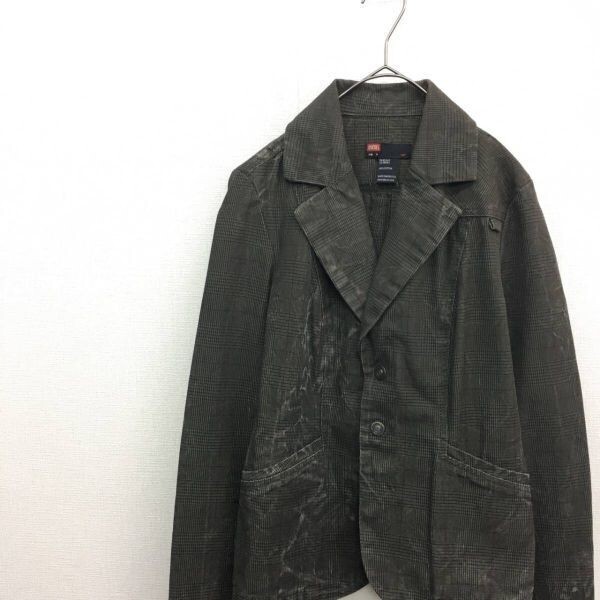 EZ2159●DIESEL チェック柄 シワ加工 テーラードジャケット●M●グレー~ブラック