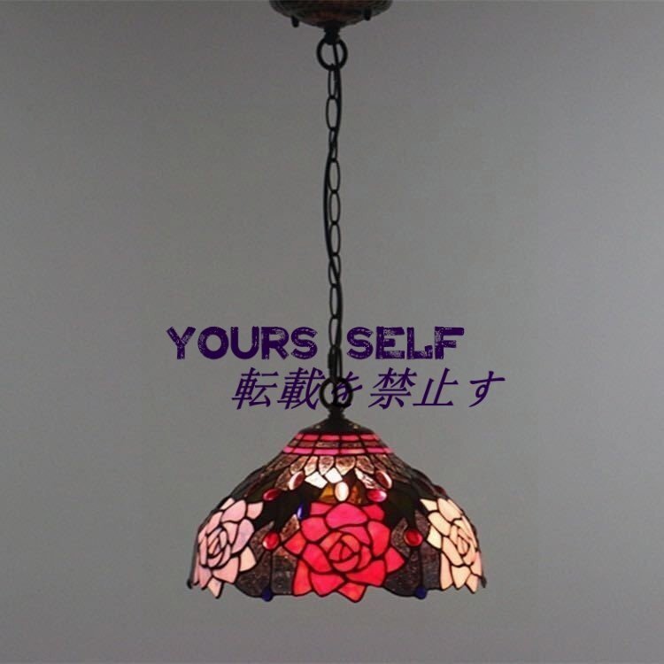 ウォールランプ 赤 ステンドランプ 天井吊り型ランプ シャンデリア ステンドグラス 花柄 ティファニー技法 照明