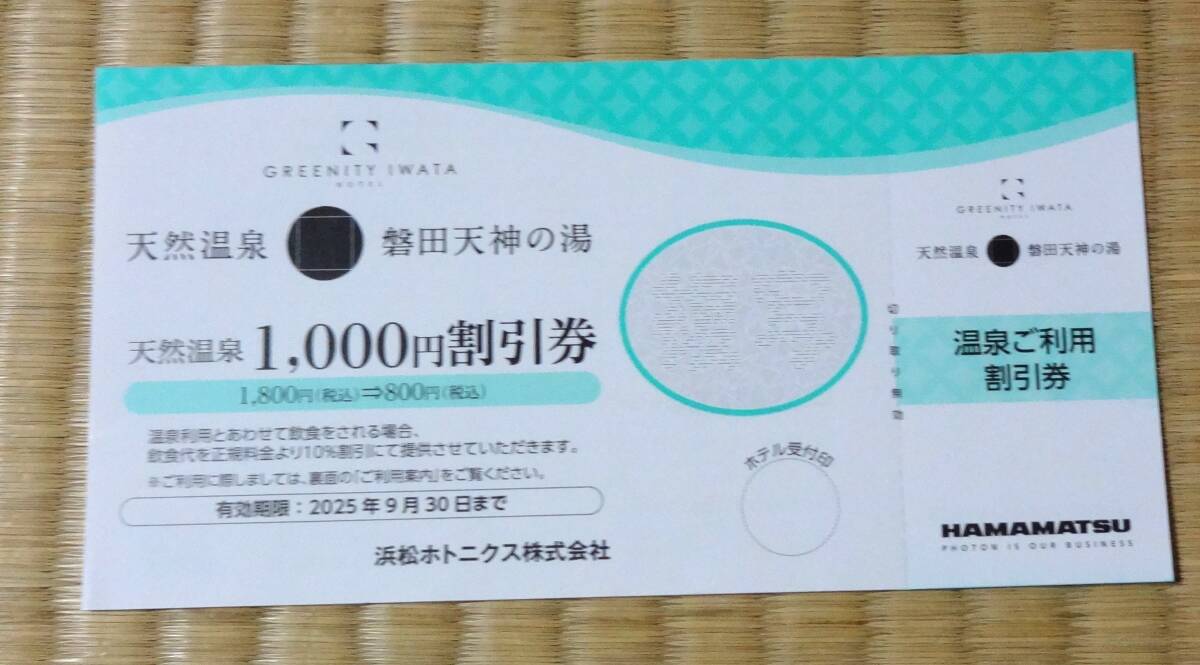 天然温泉「磐田天神の湯」割引券1枚です。