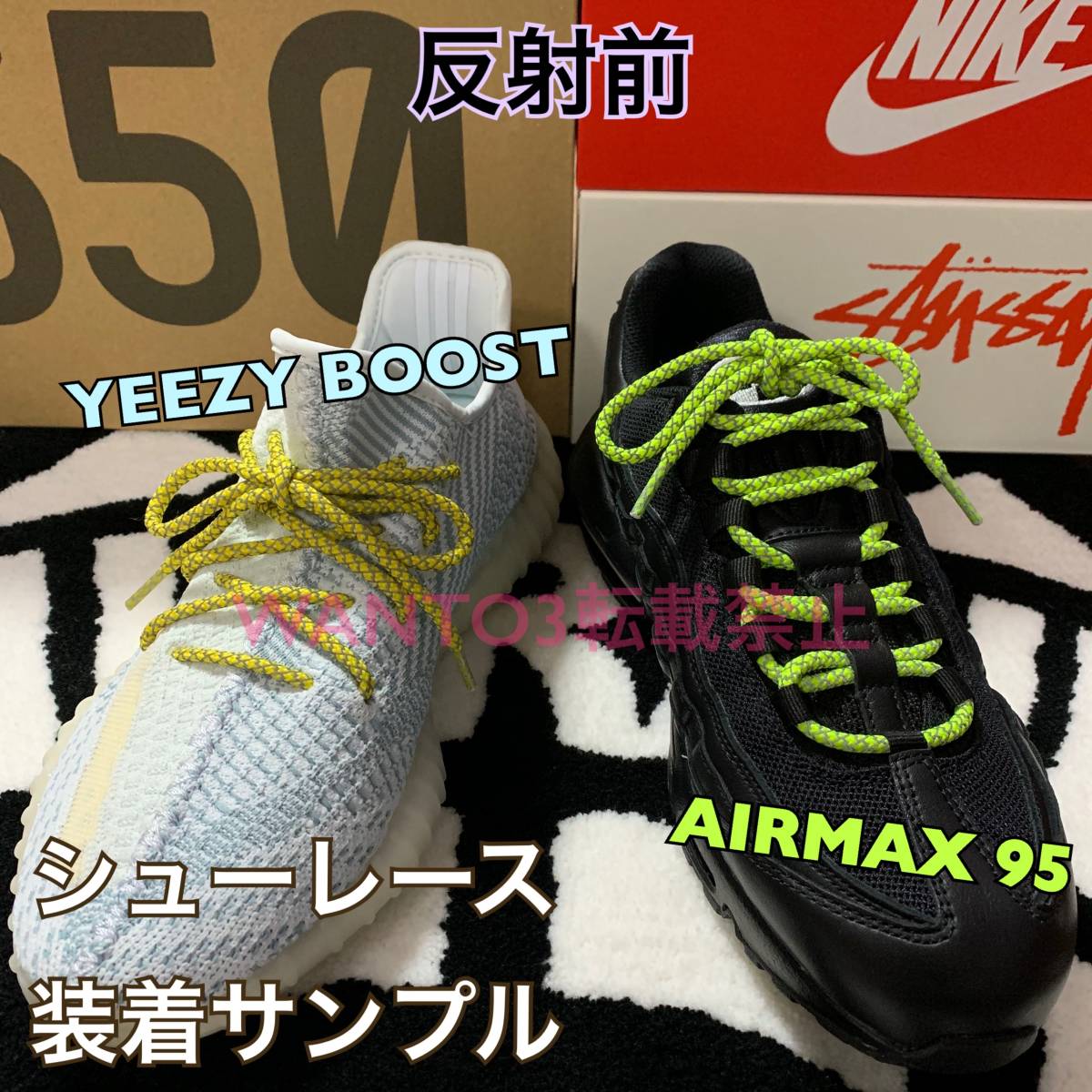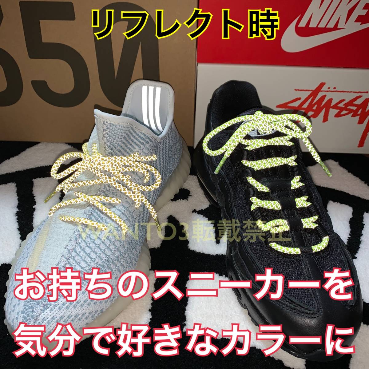 セール中!ライトグリーン☆1足分 リフレクティブ シューレース 反射 靴紐 adidas YEEZY BOOST 350 NIKE エアマックス ナイキ airmax 90 95