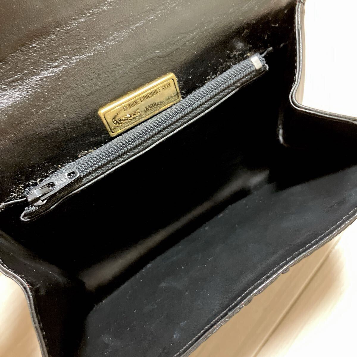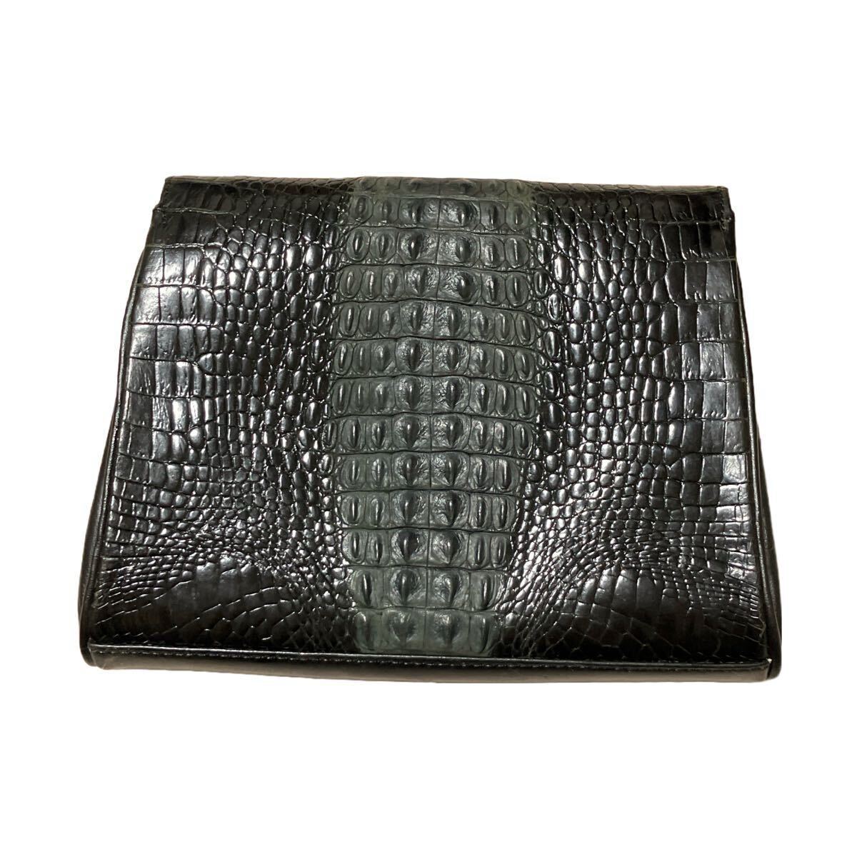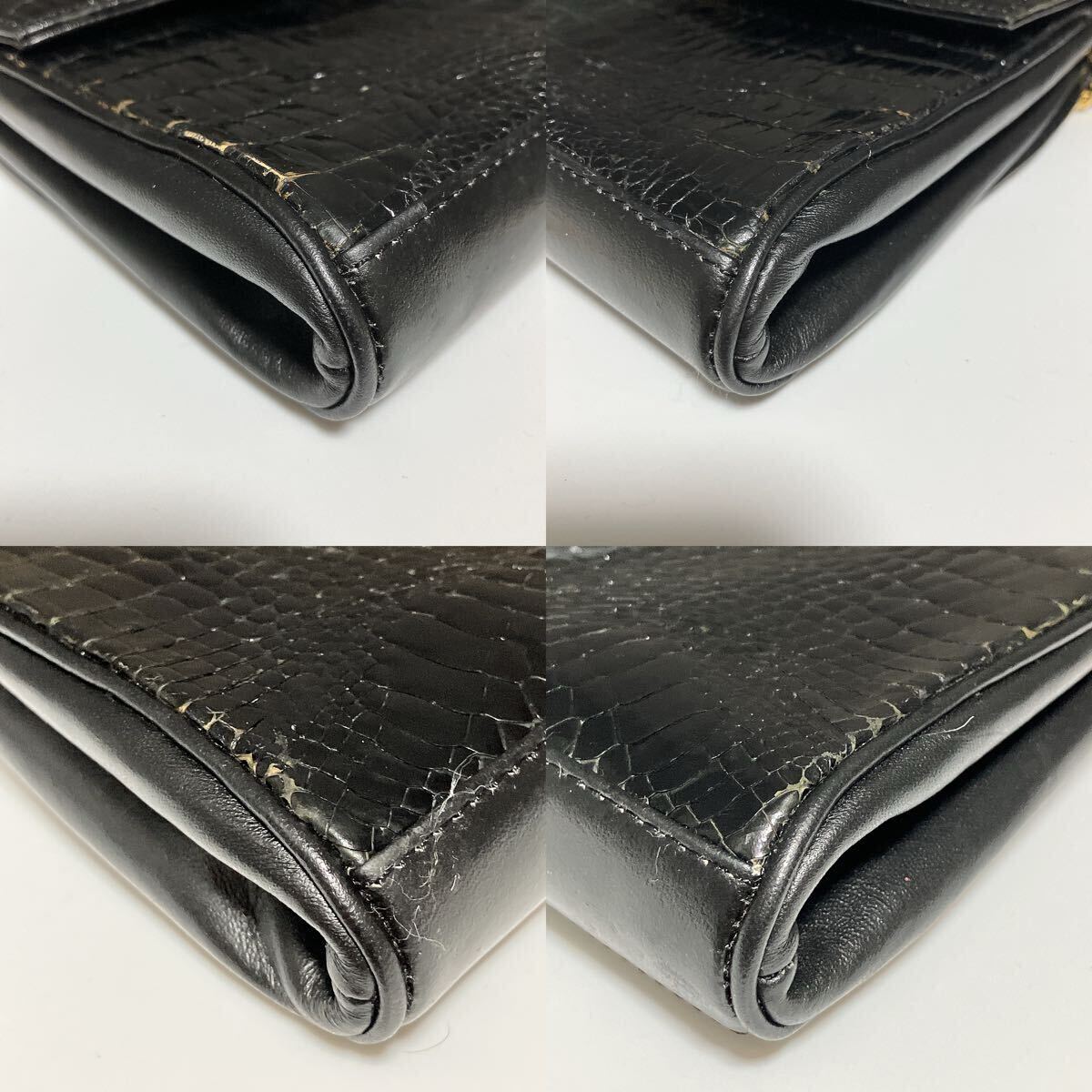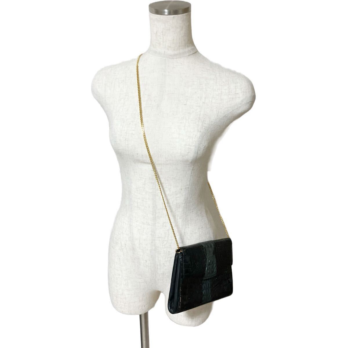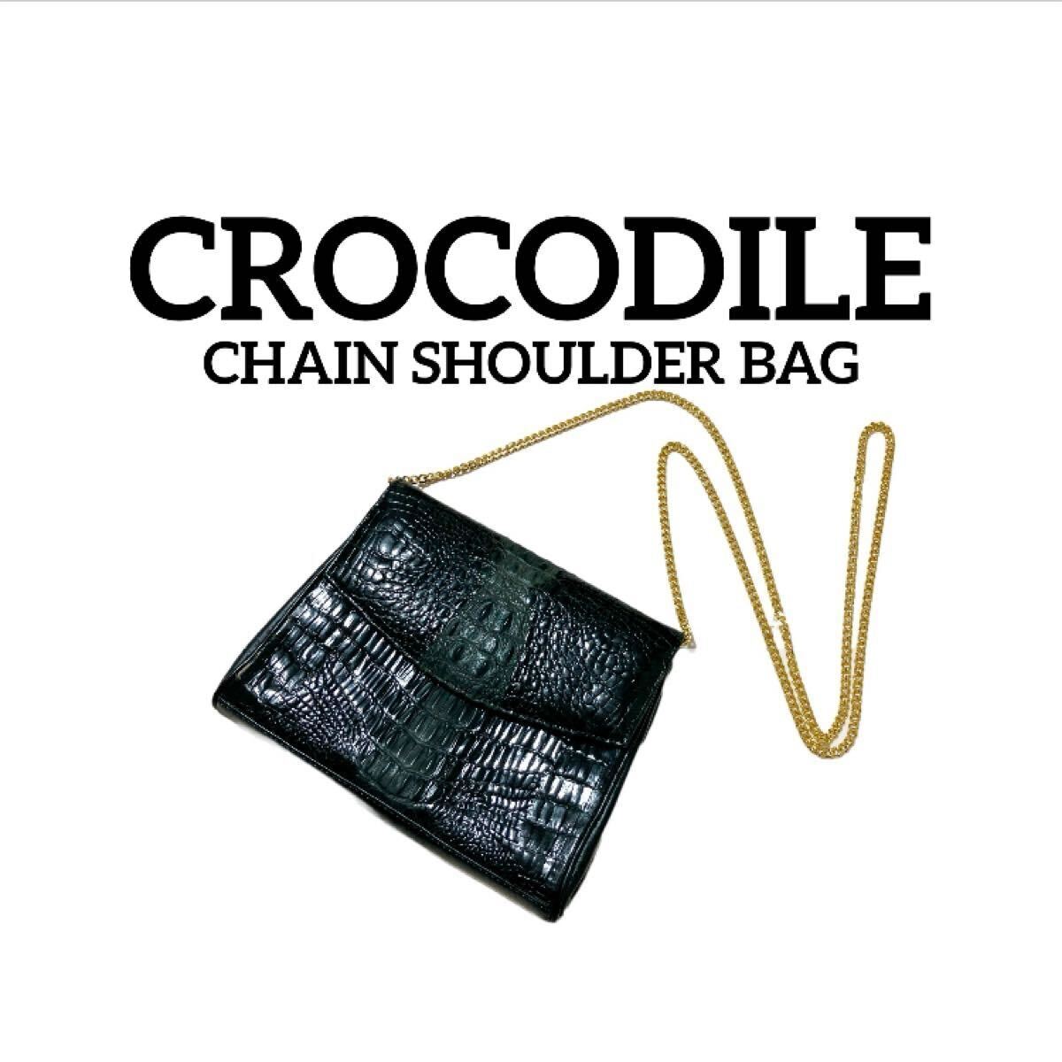 【商品名】クロコダイル チェーン ショルダーバッグ ミニ スモール ヴィンテージ 本革 黒 ゴールド レザー