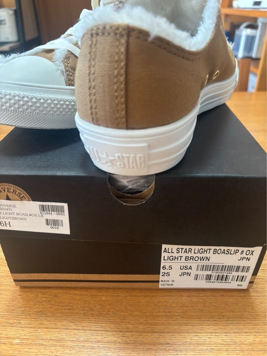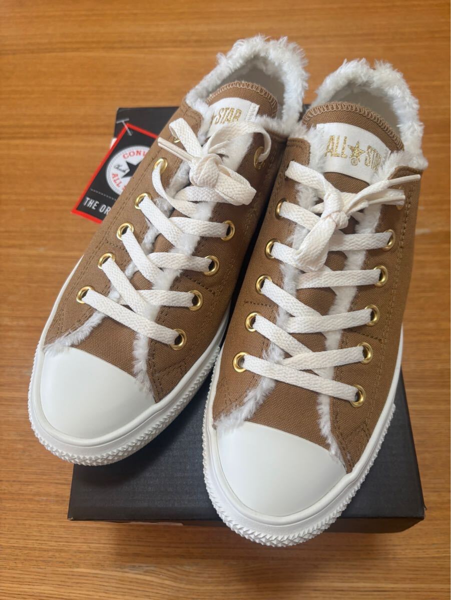 中にボアがあり暖かいです。ゴム付きなので楽に履けます。箱あります。他にもコンバース出品していますのでよろしかったらご覧下さい。