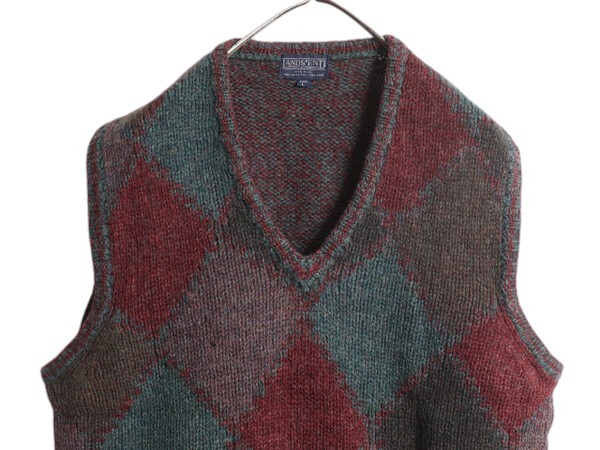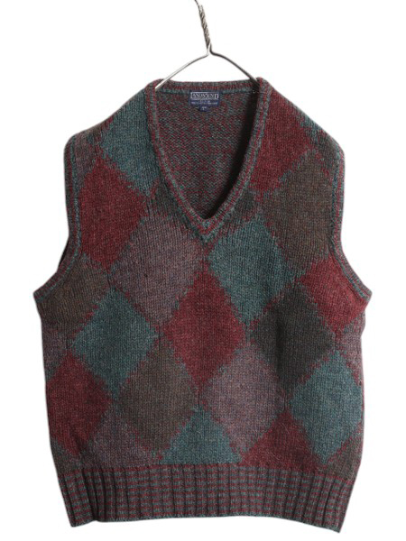 商品名 | 80s ランズエンド アーガイル デザイン ウール ニット ベスト メンズ L ヴィンテージ LANDS END 重ね着 Vネック セーター ミックスカラー |