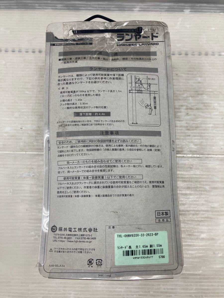 【未使用品】【0924】★ツヨロン 新規格 墜落制止用器具 OHノビロンランヤード THLOHNV93SV33 ITM2TYVRQUV3