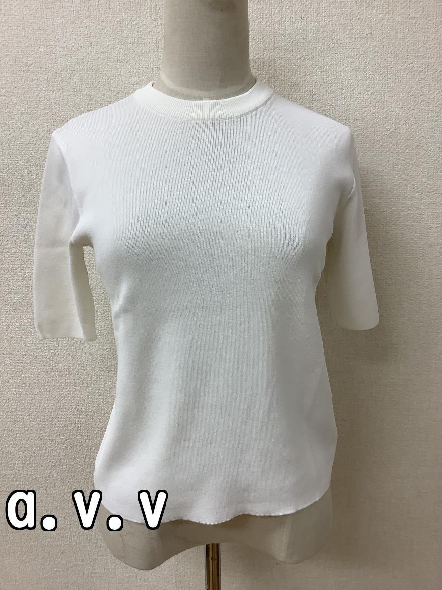 管理番号:139606 アーヴェーヴェ (a.v.v) 白半袖ニット 表示サイズ:XS 実寸(参考)