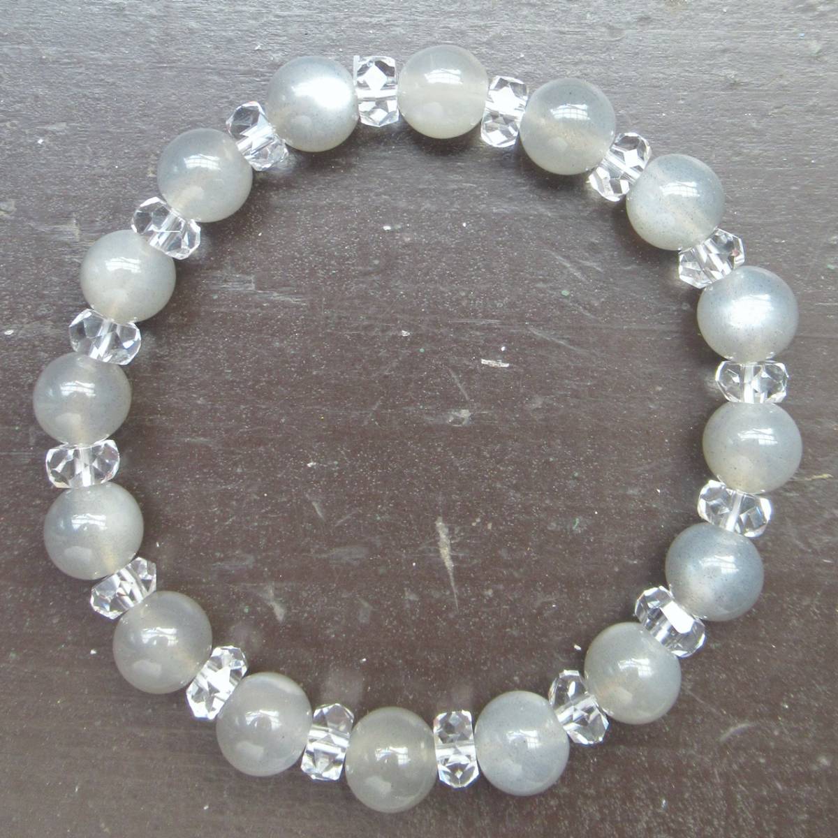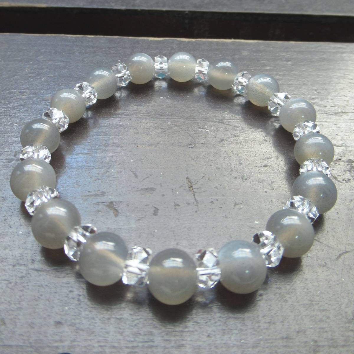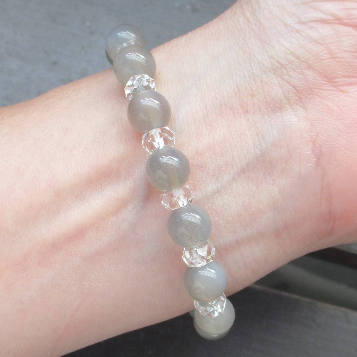 グレームーンストーンxカット水晶ブレスレット 天然石 パワーストーン