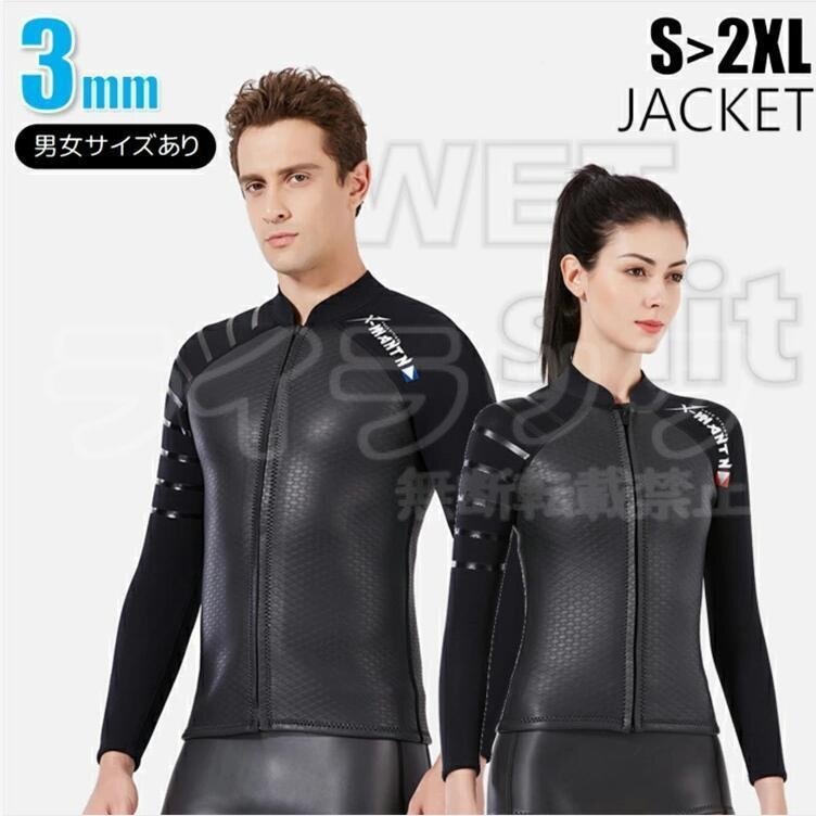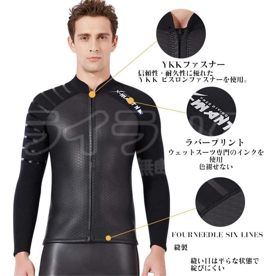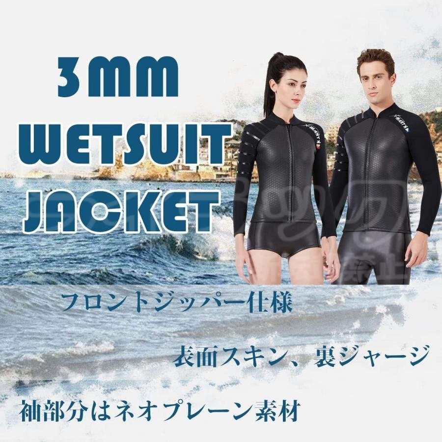 【男性用L】ウェットスーツ メンズ 3mm 長袖 タッパー スキン ジャケット フロントジッパー ネオプレン サーフィン ダイビング