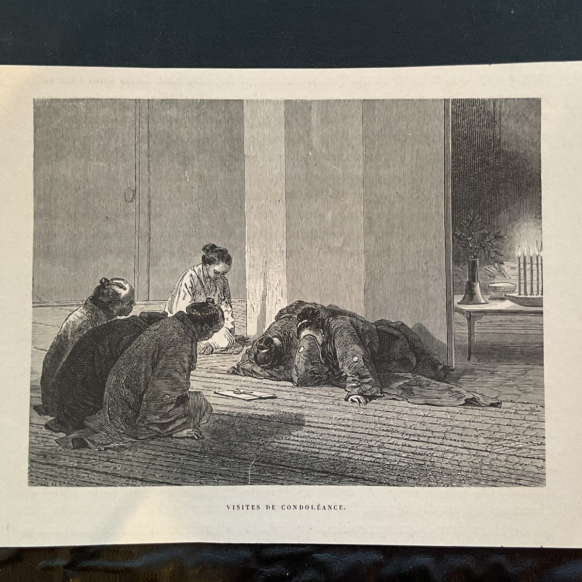 パリで刷られた、一連の版画は、鎖国から開国に向かう日本の様子を西洋人の視点で捉えています。150年以上前の物ですので、古色やシミが出ています。