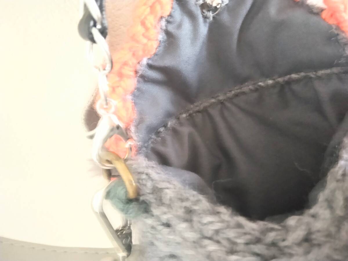 素材・・・ポリエステル毛糸100%・アクリル毛糸100% サイズ・・横11cm(入る部分10cm)・縦15cm・マチ1cm・ハンドルチェーンレザー調30㎝(材質,アルミニウム・亜鉛合金・ポリウレタン)・ ショルダーストラップレザー風125cm(材質,塩化ビニル樹脂・亜鉛合金・スチール) ※ 採寸は素人が行っていますので、多少の誤差はご容赦願います。★全て手編みと手縫いで仕上げて居ります。手作りの風合いを含めて気に入って下さる方に・・・★あくまで素人の手作り品という事でご理解下さい。既製品のクオリティをお求めの方は落札をご遠慮願います。★ノークレーム・ノーリターンで御願い致します。★新規・評価がマイナスの方は入札を取消させて頂く場合が有ります。尚、 新規で購入の意思がある方は質問欄より事前にご連絡下さい。★定形外かレターパックプラス(対面でお届け)でお送りいたします。尚、 保障が無い方法をお選びになった場合の郵便事故は責任を負いかねますの でご了承願います。★極力、入金当日~3日以内に発送しておりますが、何日までに使いたい等 ご希望がある場合は質問欄より事前にご質問下さい。 尚、土日は近隣郵便局休みの為、発送の作業が出来ません。★他にも出品しています。同梱出来るものと出来ないものがありますので、 詳しくはお問い合わせ下さい。★以前評価126頂いて居ります。