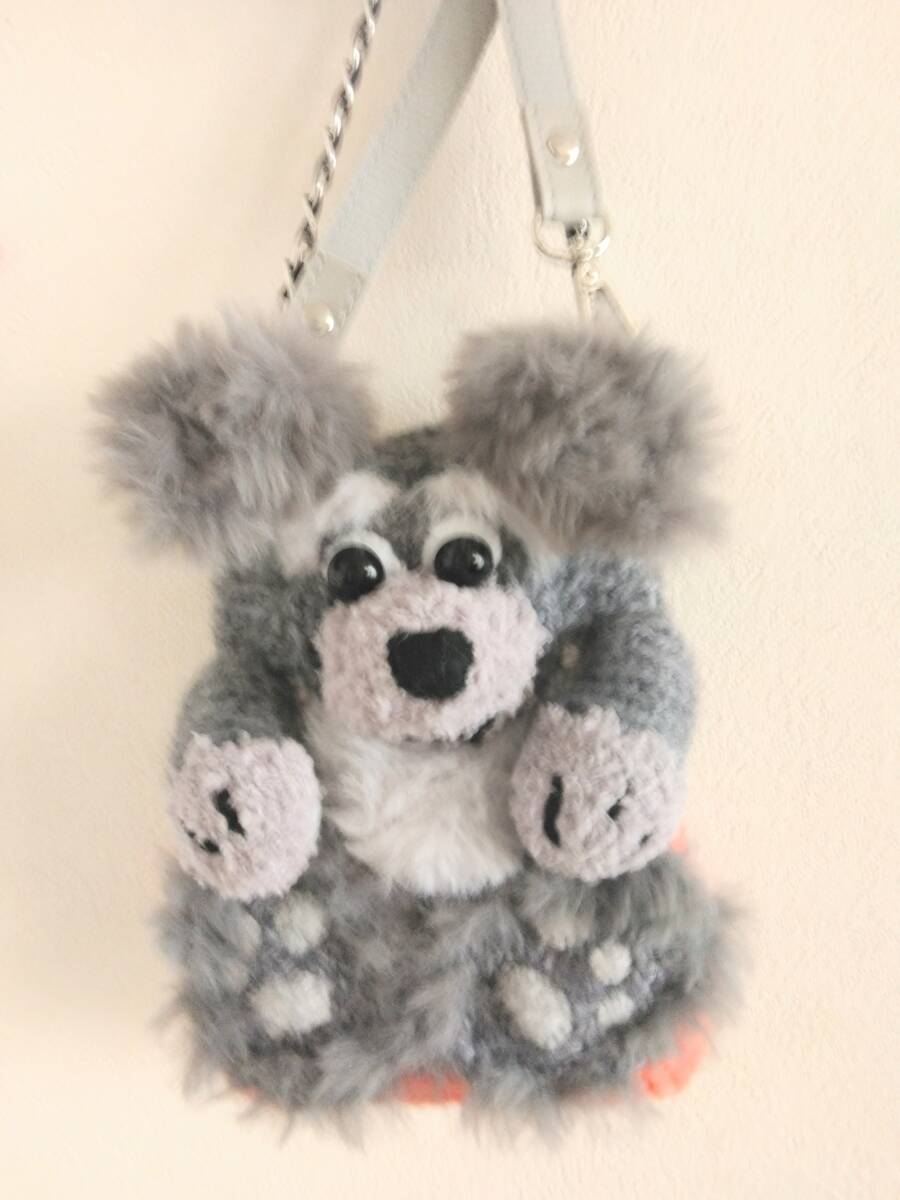ふわふわのシュナイダー犬のスマホ・小物入れになっております。後ろポケットにはカード入れが付いていて便利です。ショルダーストラップを外して、カバン等に付けてスマホ又は小物入れとしてご使用ください
