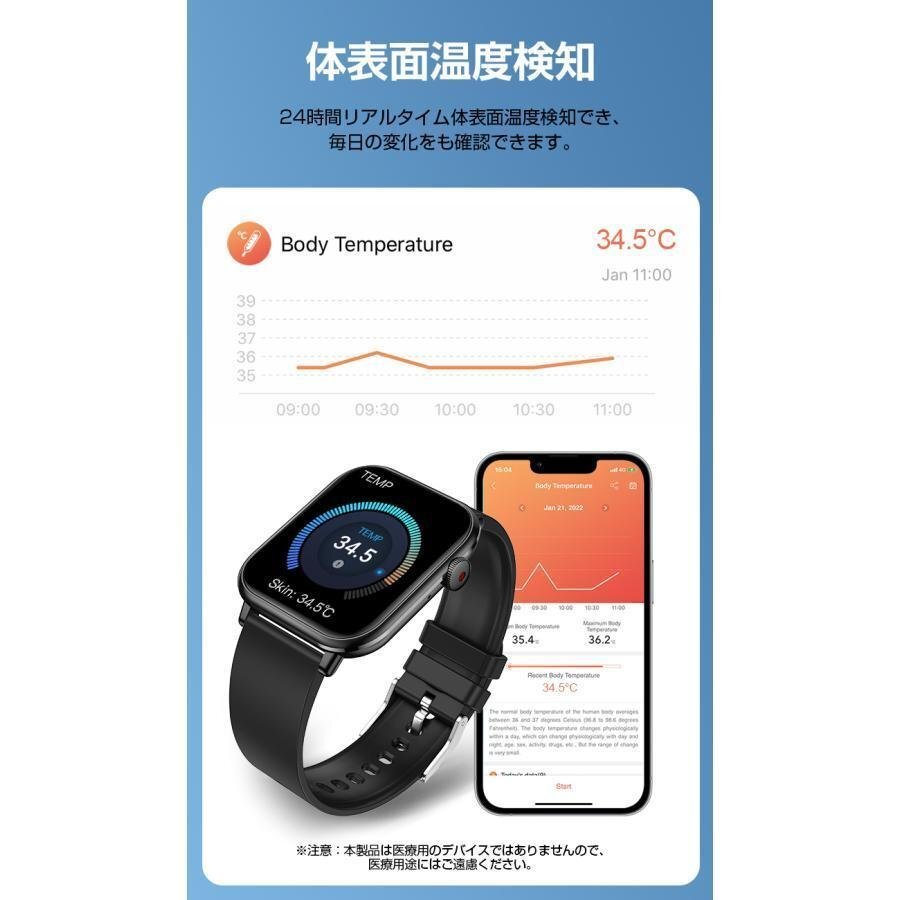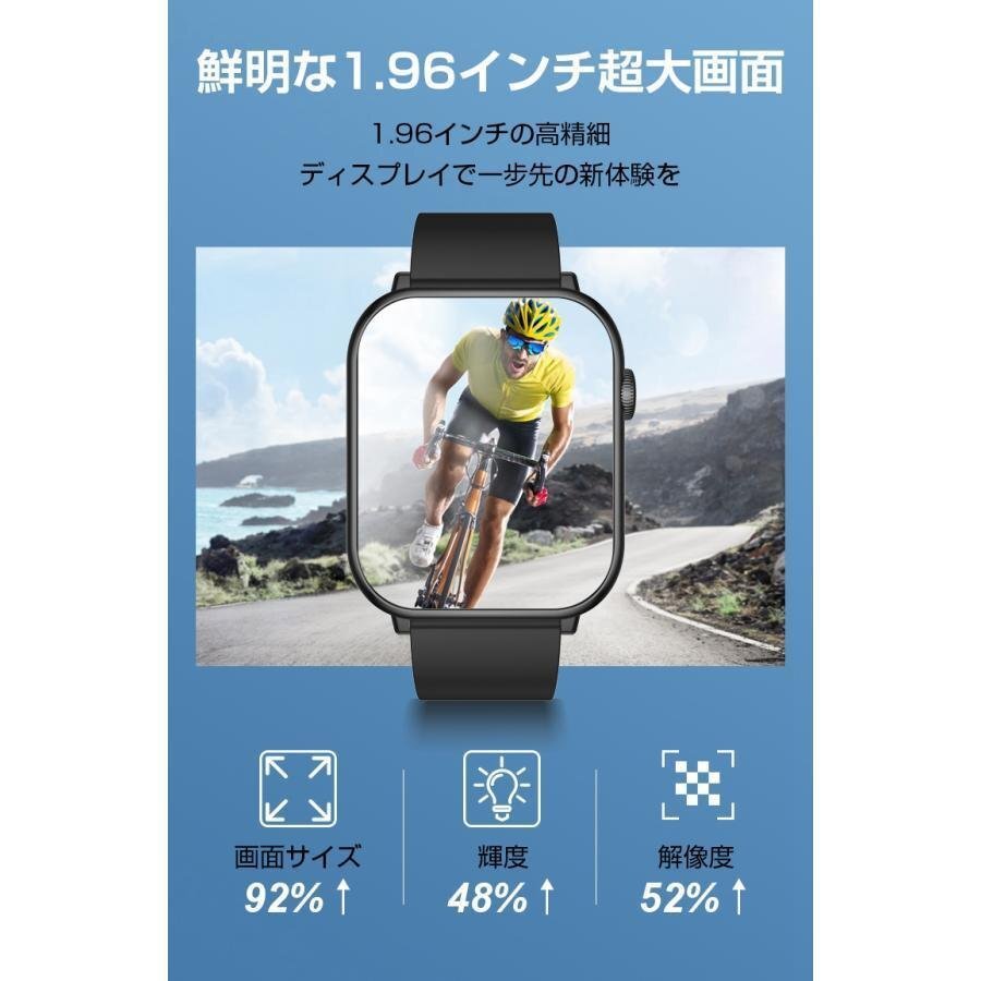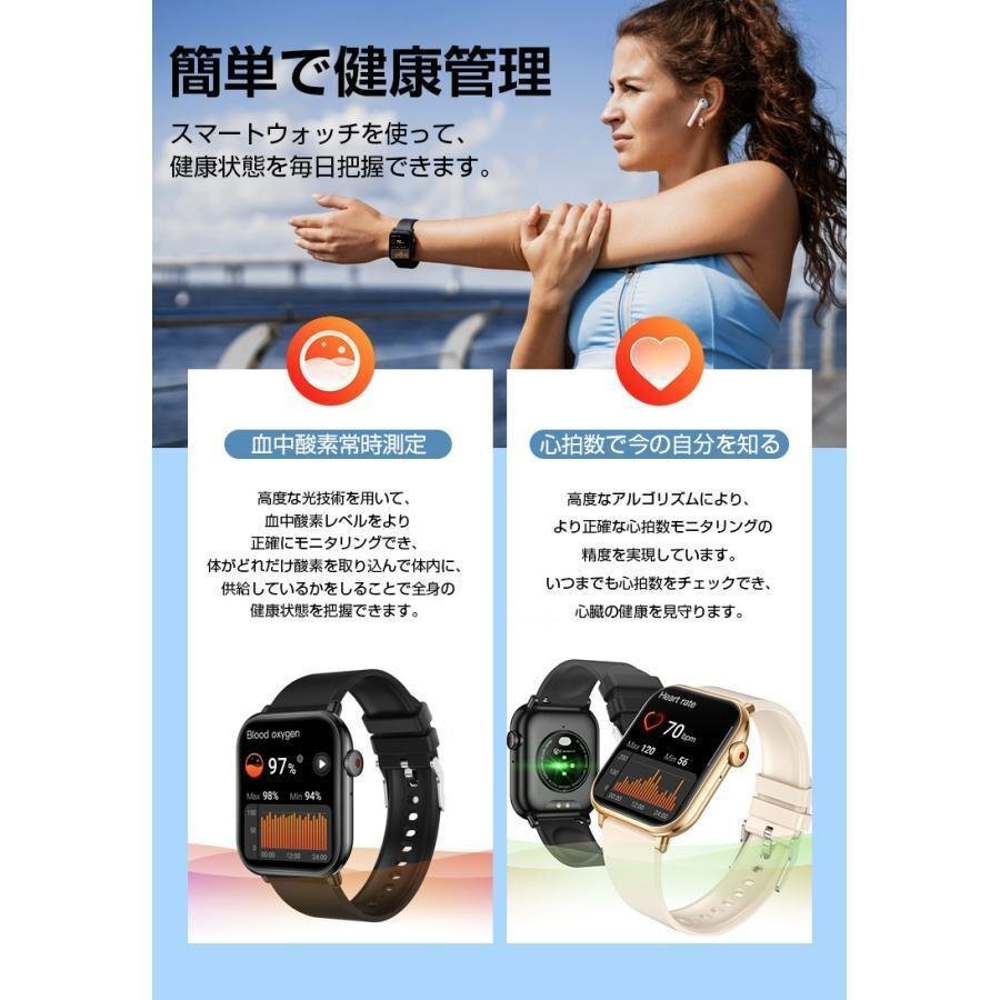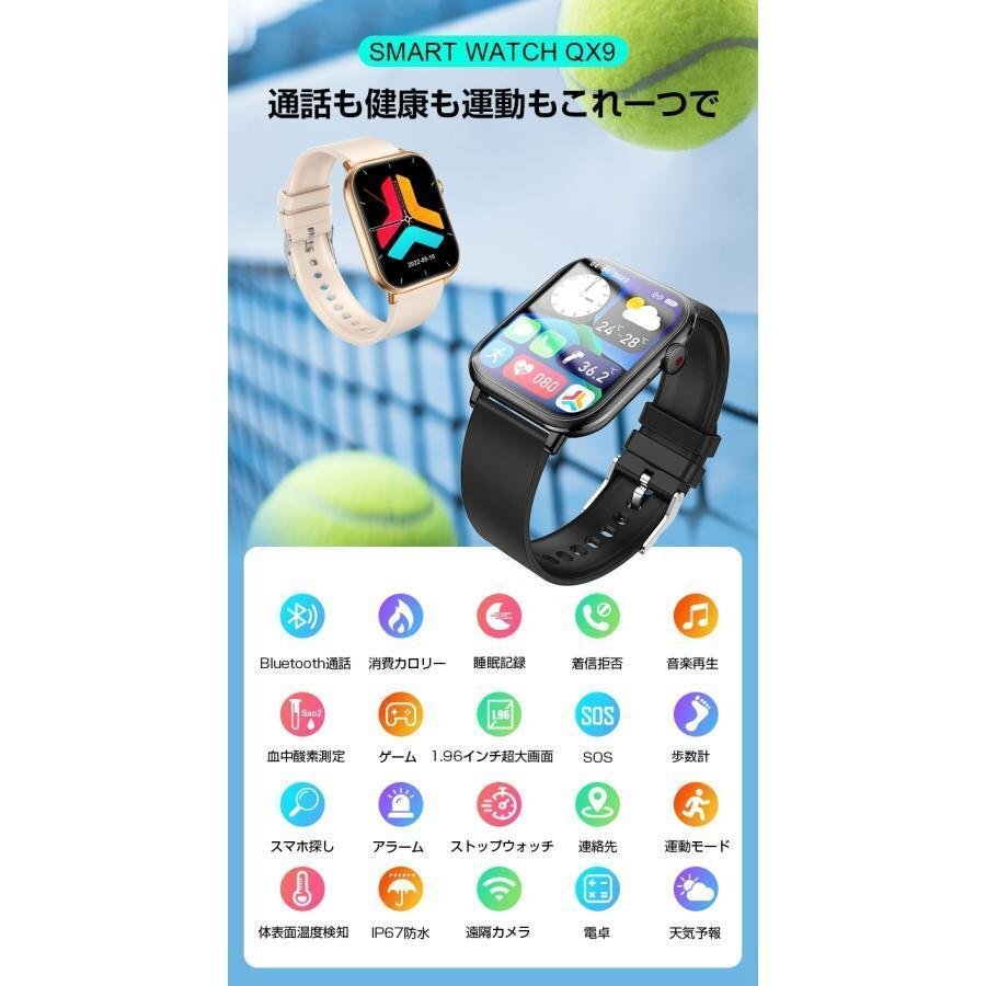 スマートウォッチ 日本語説明書 1.96インチ大画面 24時間健康管理 Line運動モード歩数計心拍数睡眠モード 天気予報 防水 ゴールド