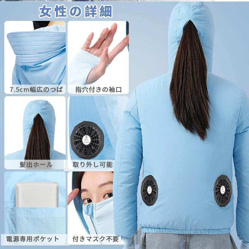 【ライトブルー2XL】空調作業服 ウェア 瞬間冷却 紫外線対策50000mAh速乾 超薄超軽量い 熱中症対策 冷却服 UVカット 3段階風量調節 女用