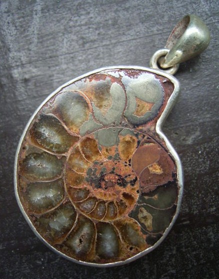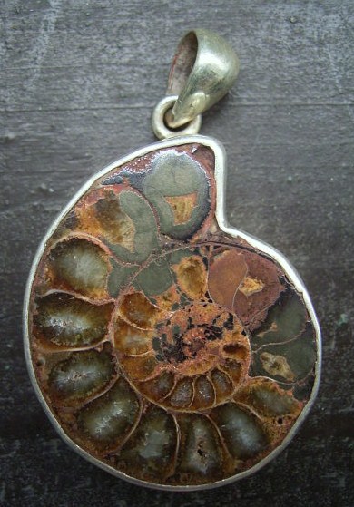 化石アンモナイトをシルバー925枠でペンダントトップに仕上げました。