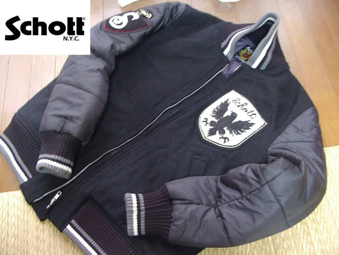 【送料無料】ショット Schott NYC エンブレム スタジアムジャンパー アワードジャケット ブラック Mサイズ 3132041 新品・タグなし
