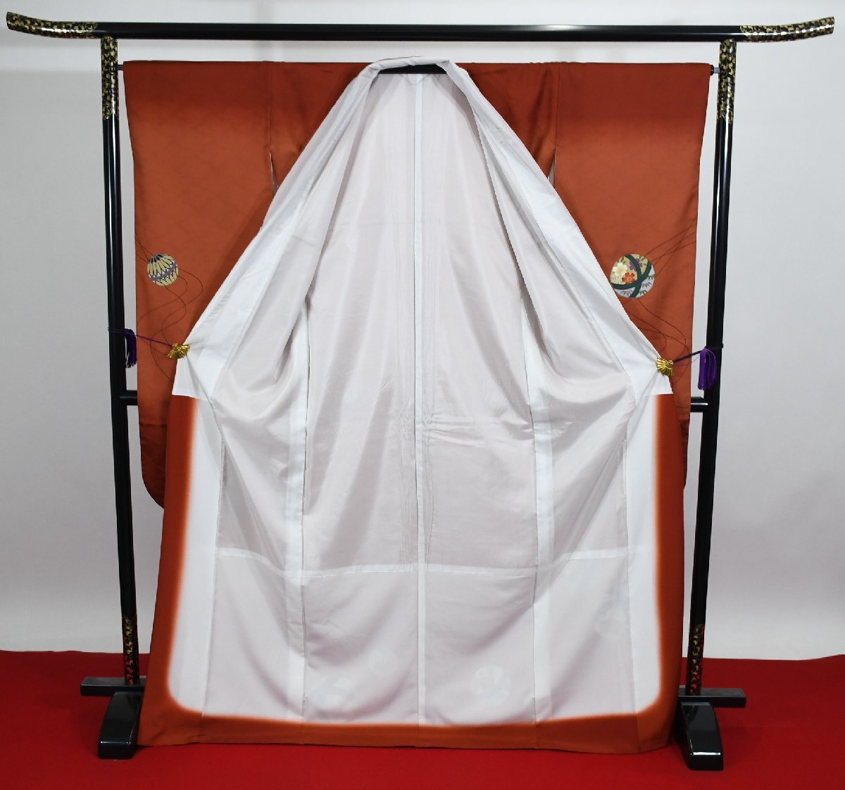 サイズ | ▼身丈 (背中から) 167cm ▼裄丈 67cm ▼袖丈 108cm ▼後巾 29cm ▼前巾 24.5cm |