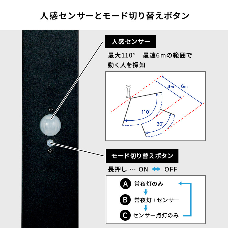 工事不要 ガーデンソーラーセンサーライト 7.5W角型