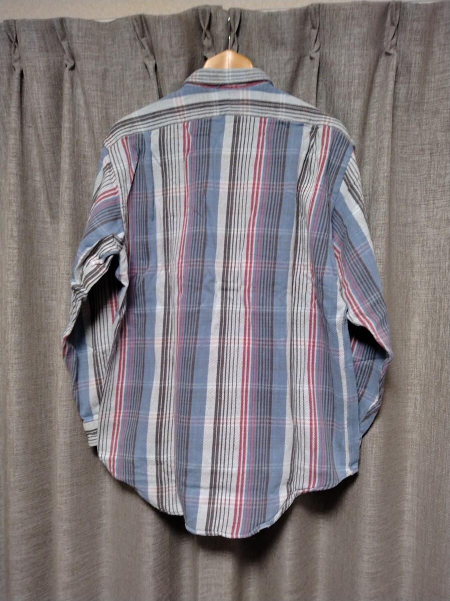 素人寸法なので多少の誤差はあるかもしれませんが、実寸で肩から肩で測って肩幅約47cm、脇の下で測って胴回り約61cm、背中の中心で測って着丈約81cm、脇の下から測って袖丈約52cmです。