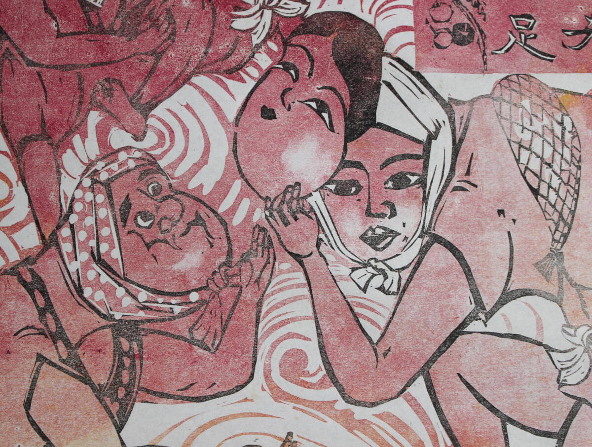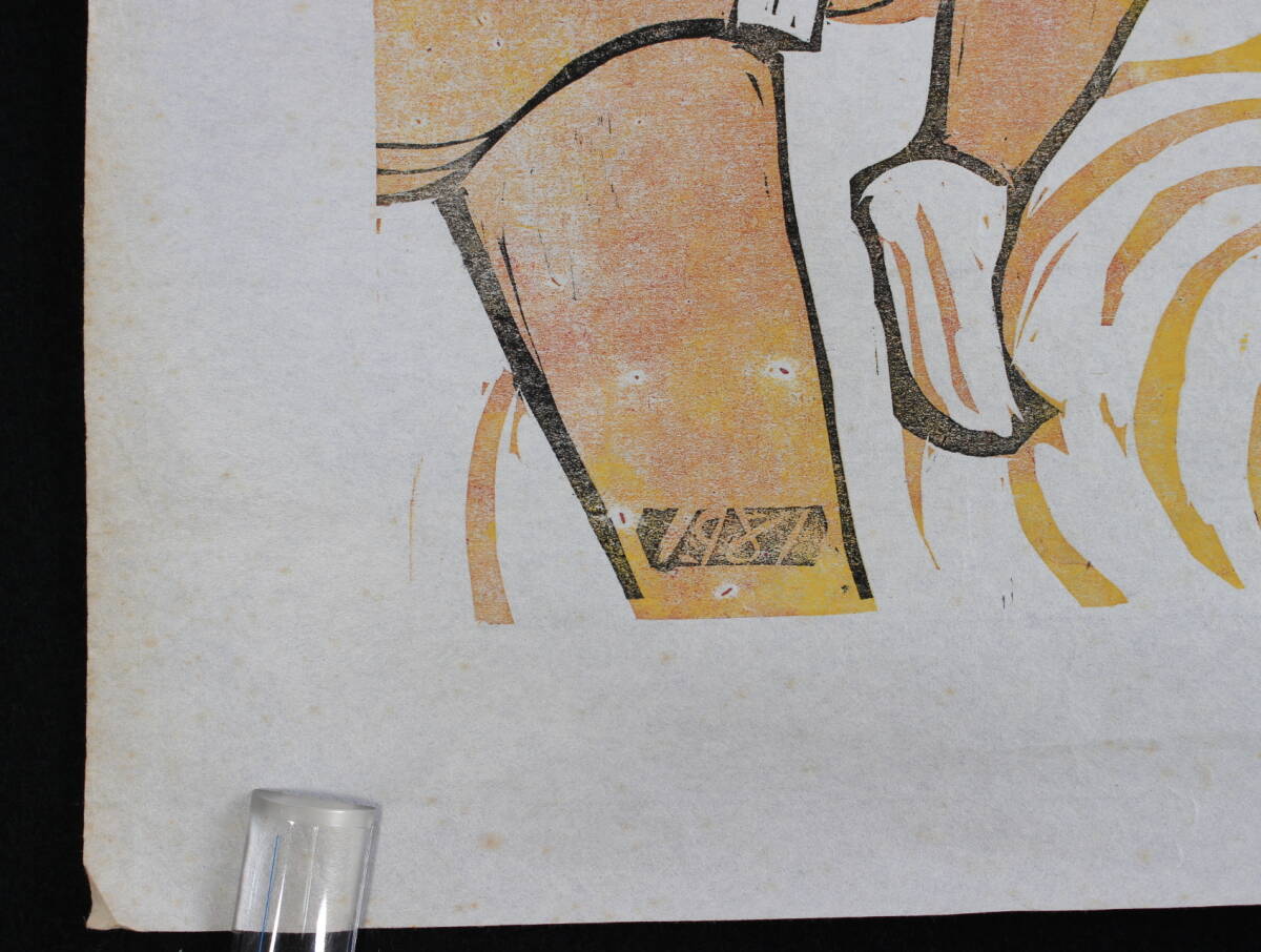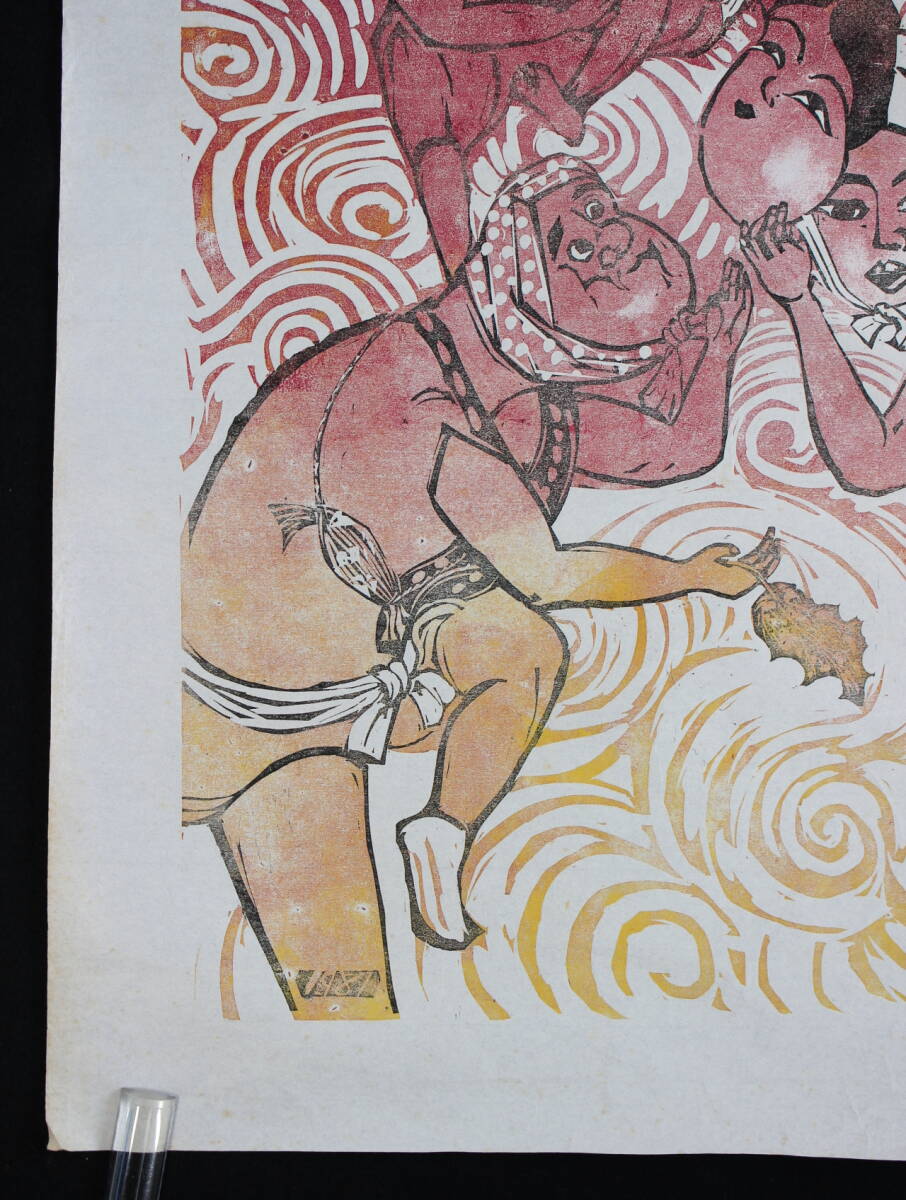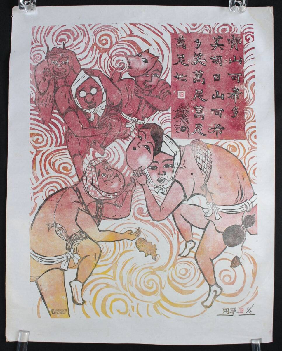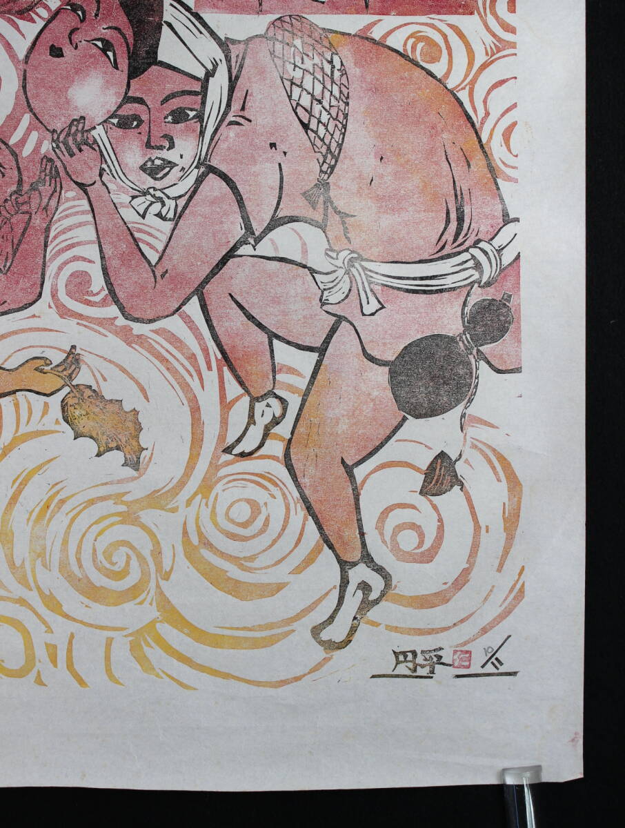 【真作】 大判 木版画 円平仁(のぶひら・じん)『宵山可希多~』 10/11 青森県 旧常盤村水木出身 版画家