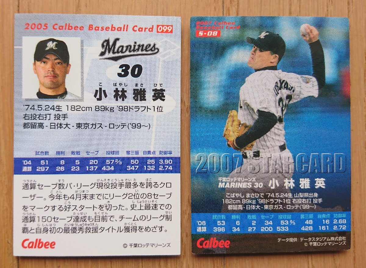 【カード・カルビー】小林雅英 2005年099 / 2007年S-08 スターカード 計2枚セット 千葉ロッテマリーンズ カルビープロ野球チップス