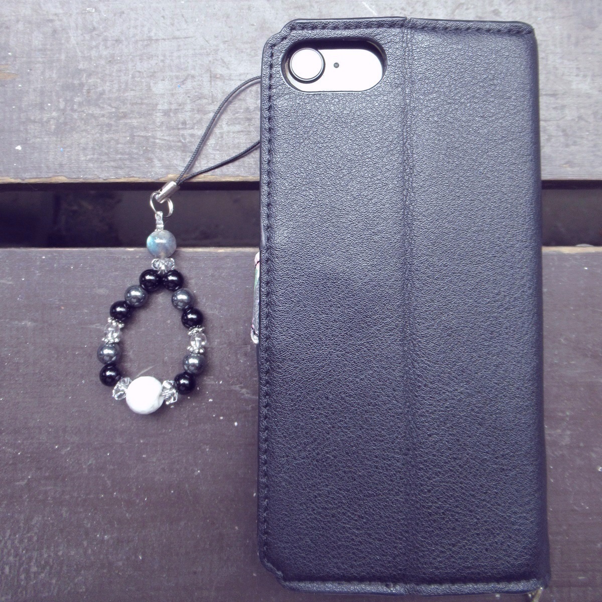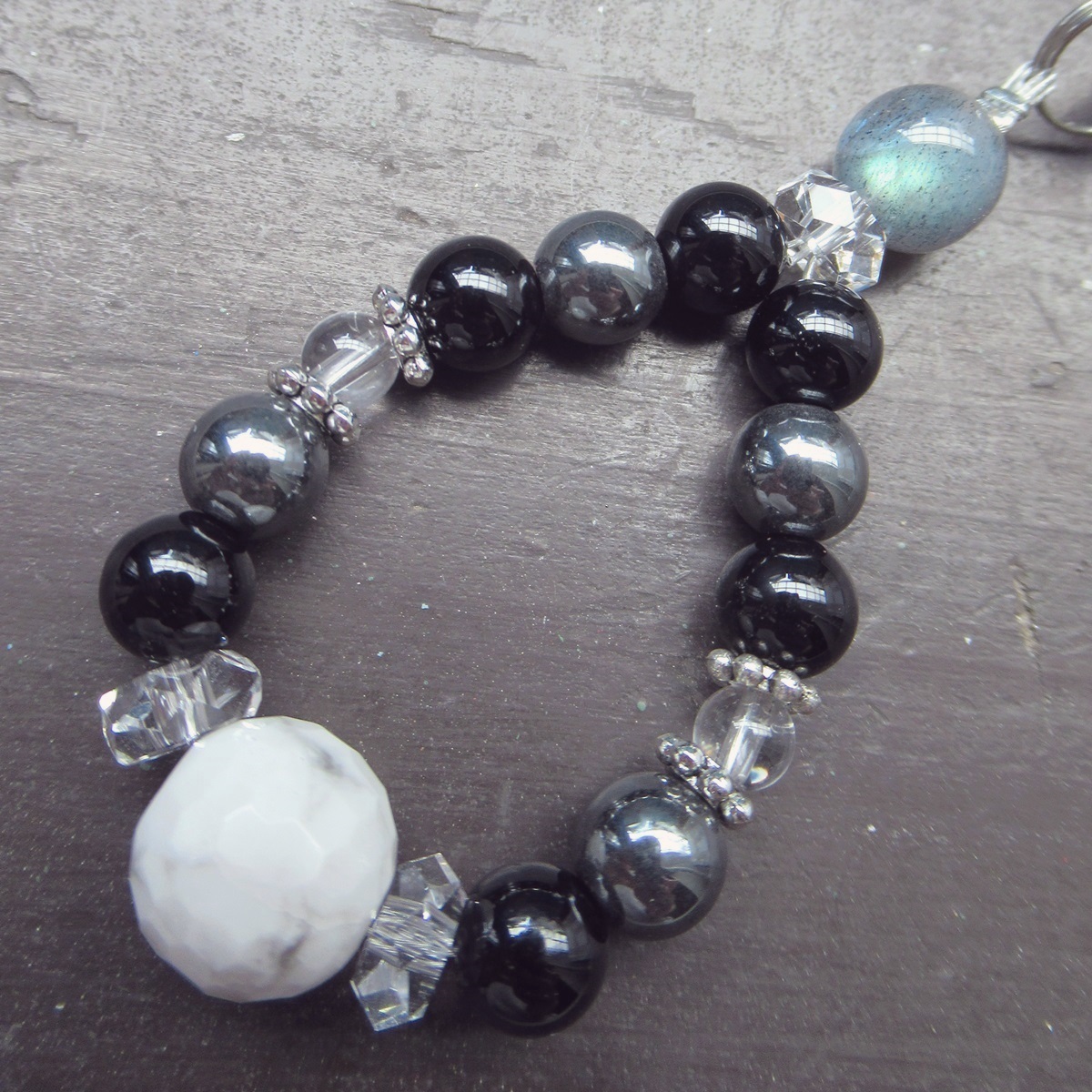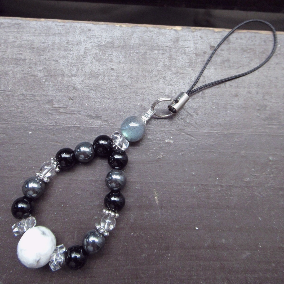 ハウライトxラブラドライトxオニキスストラップ 天然石 パワーストーン