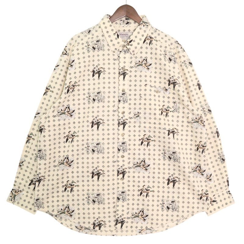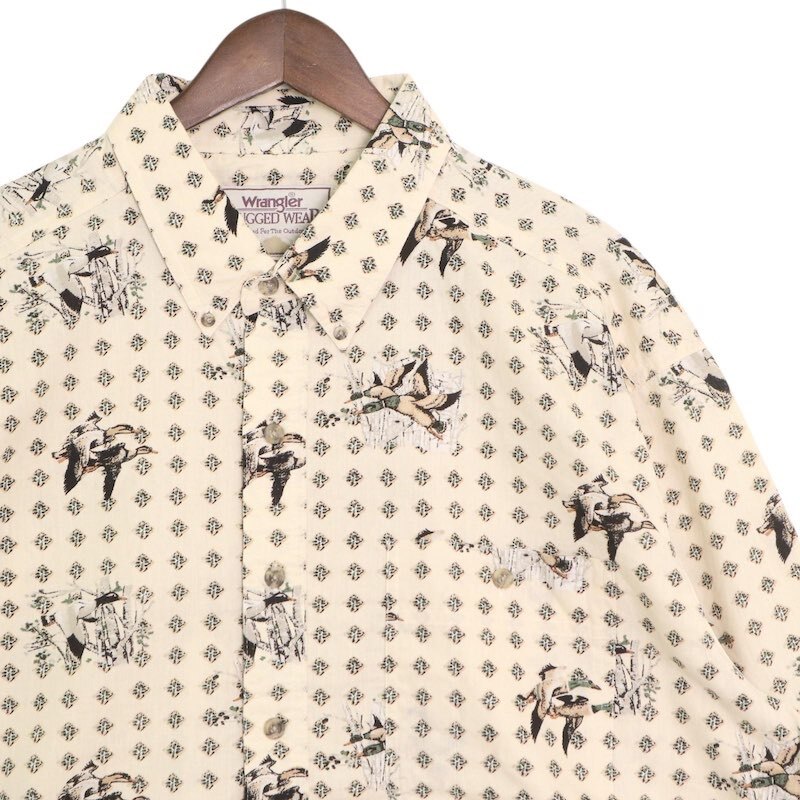 00's Wrangler RUGGED WEAR ラングラー 鳥総柄 長袖ボタンダウンシャツ メンズUS-XXL ライトベージュ系 hsc-0068n