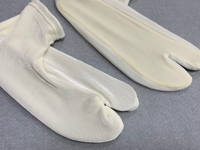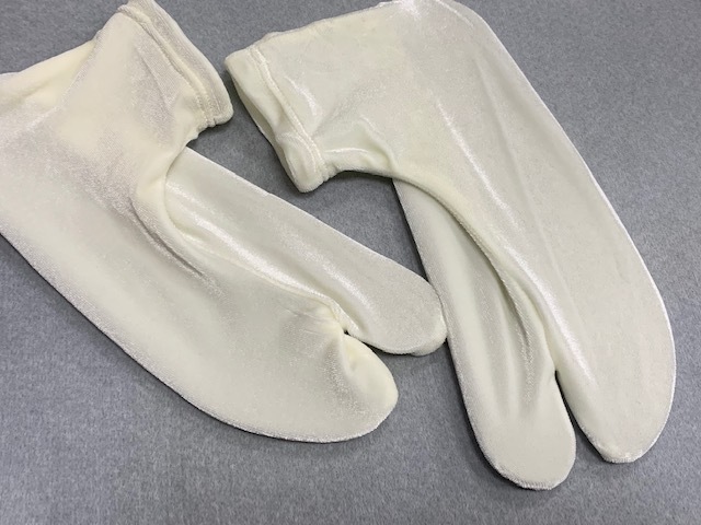 人気のオフホワイト おしゃれなベロア足袋 光沢と肌触りがソフト 日本製