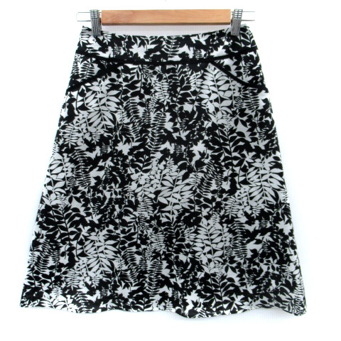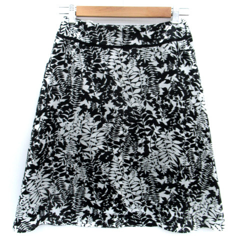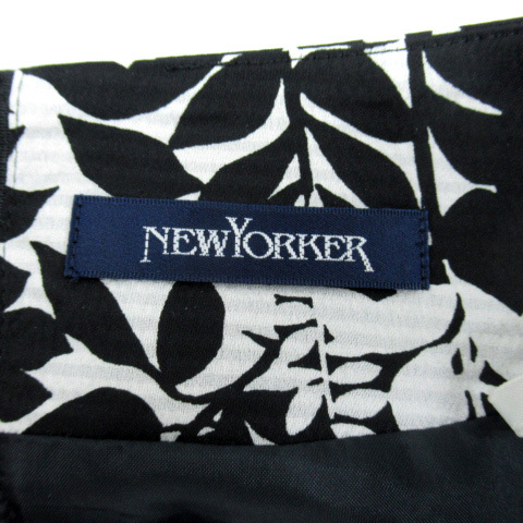 ニューヨーカー NEWYORKER フレアスカート ミモレ丈 総柄 7 黒 ブラック 白 ホワイト /SM31 レディース