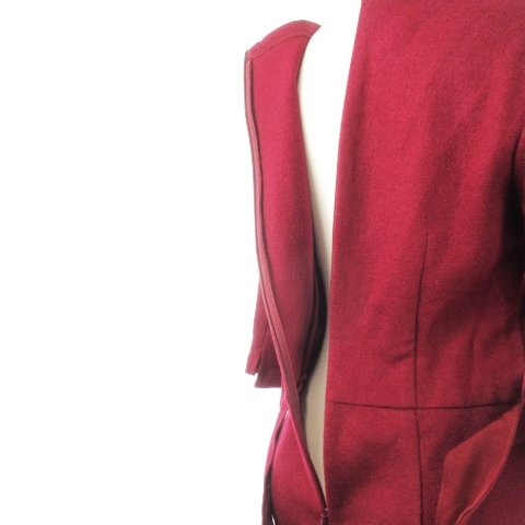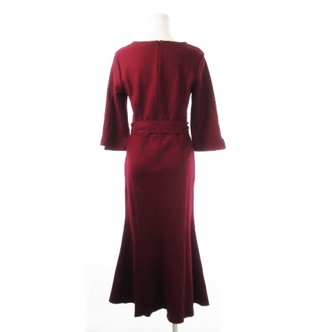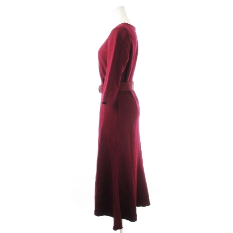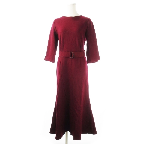 ドゥクラッセ DoCLASSE マーメイドワンピース ロング 七分袖 ウール ウエストマーク ベルト 縮絨 ストレッチ 7 赤 レッド