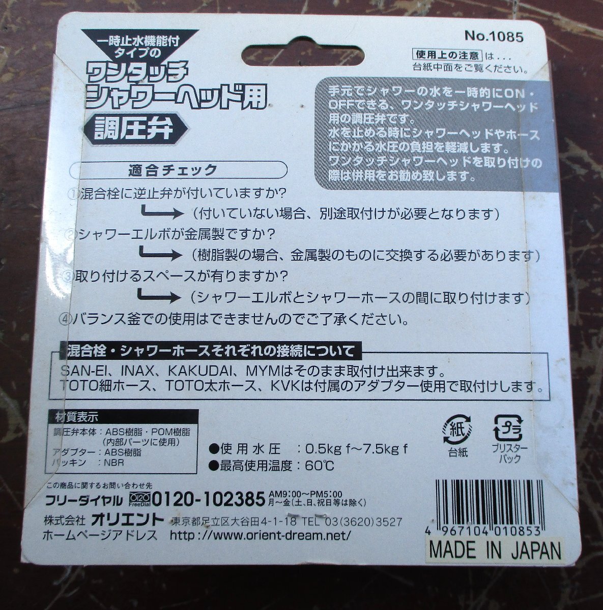 ☆オリエント 1085 一時止水機能付タイプのワンタッチシャワーヘッド用 調圧弁◆ホースにかかる水圧の負担を軽減991円
