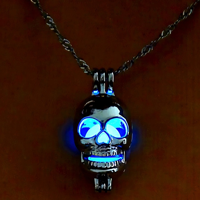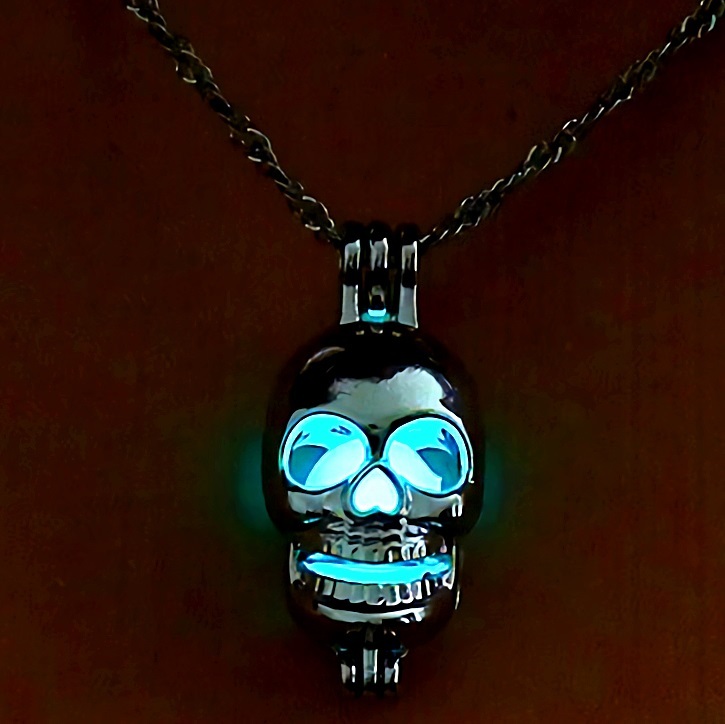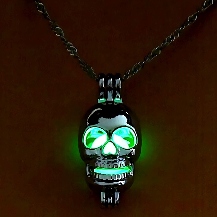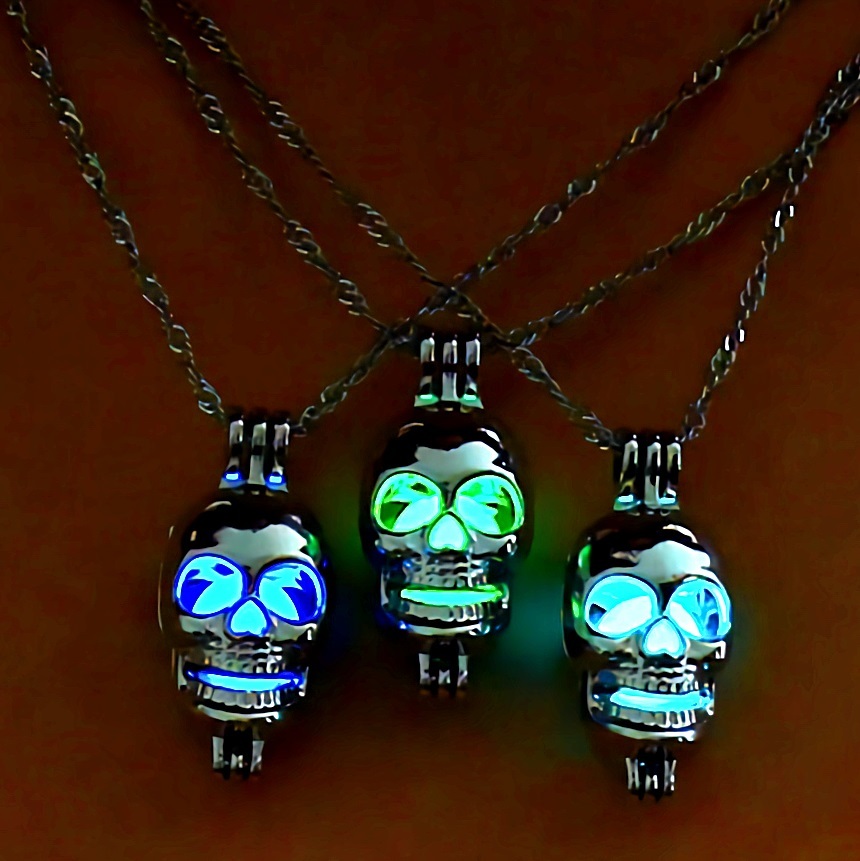 新品★送料無料★暗闇発光 3色緑青水 光る骸骨ドクロ プラチナ仕上925シルバーネックレス誕生日プレゼント旅行連休初春ギフト国内発送
