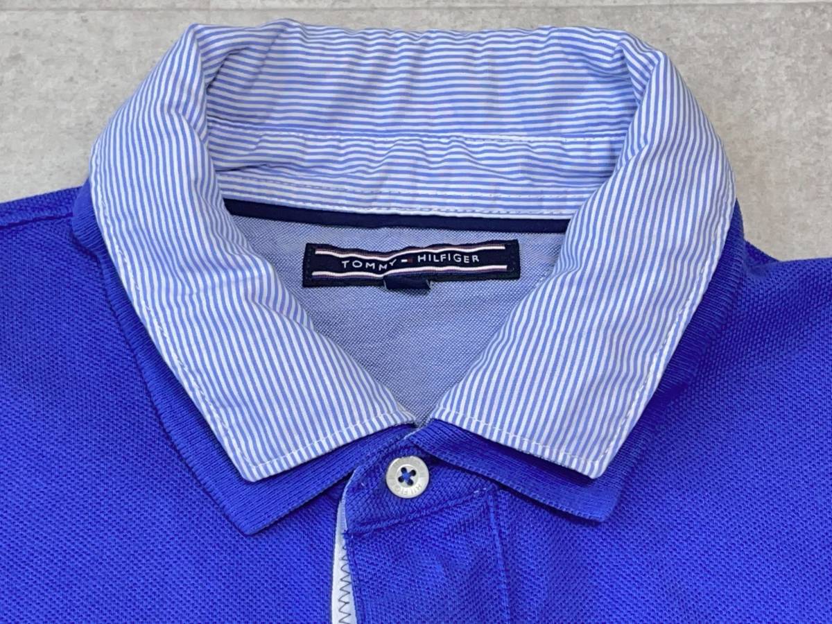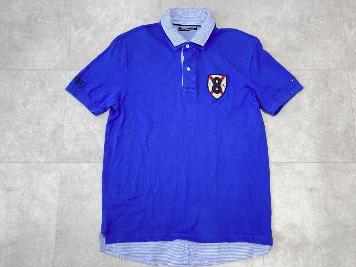 TOMMY HILFIGER トミーヒルフィガー 古着 半袖 フェイクレイヤード ポロシャツ メンズ M ブルー トップス 中古