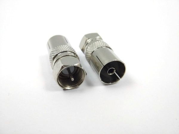 | 同軸アンテナケーブル 中継コネクタ F型オス-PAL9.5メス 2個セット サイズ:約1.2cm X 2.6cm 詳細は写真を参照してください。 |